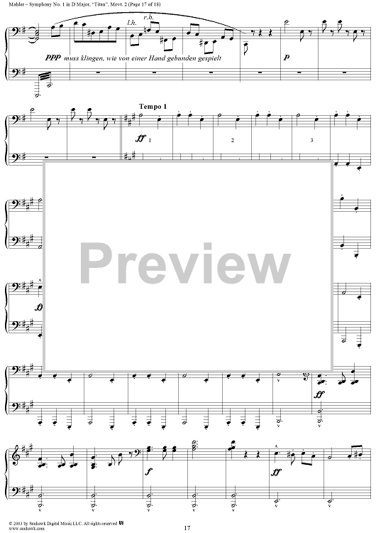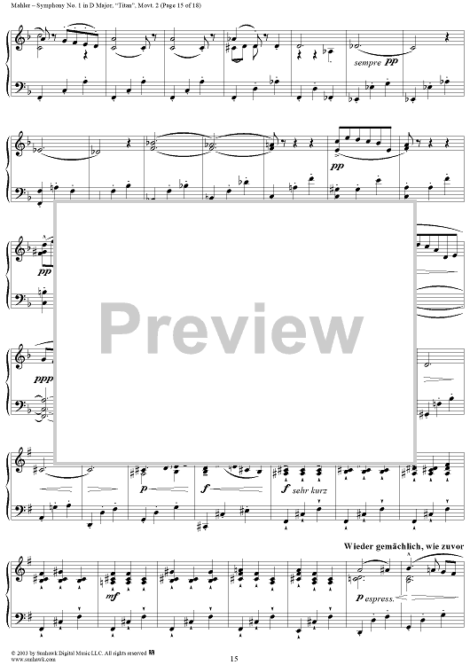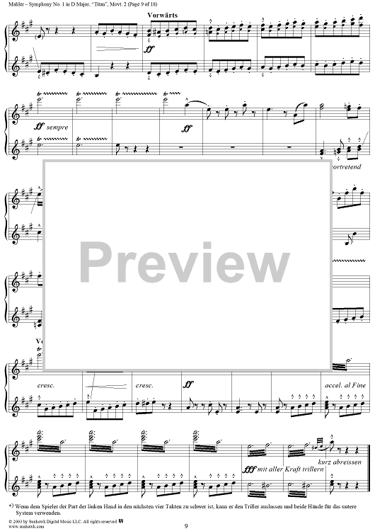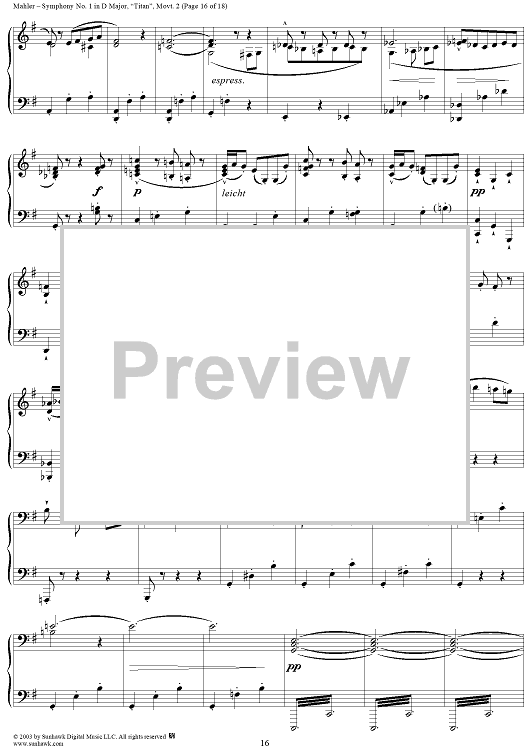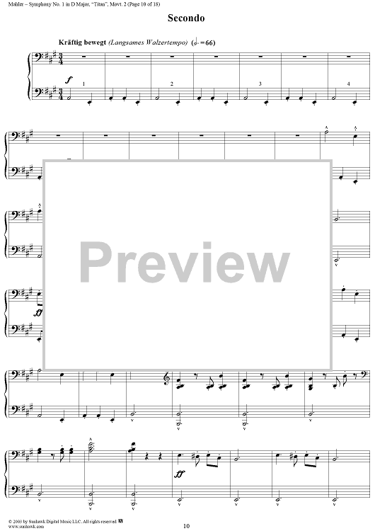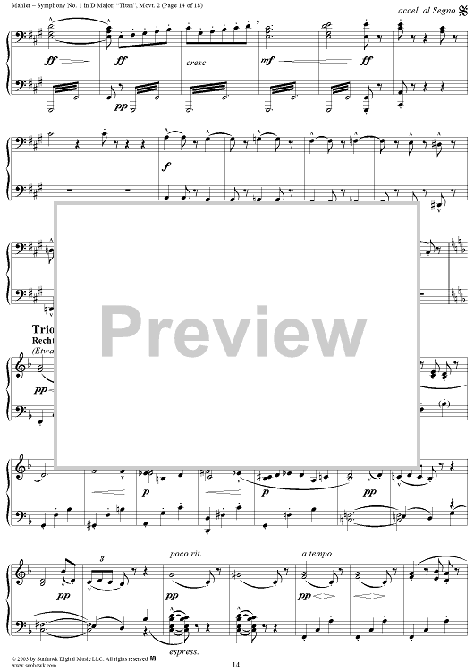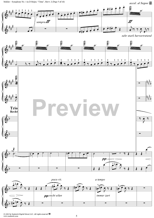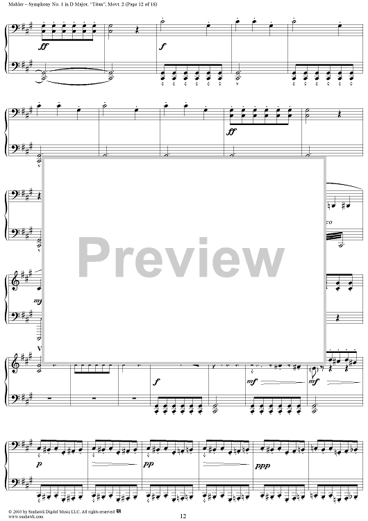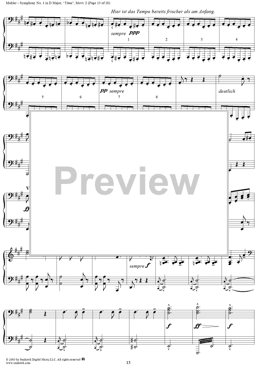 Digital Sheet Music for Symphony No. 1 in D Major, "Titan", Movement 2 by Gustav Mahler scored for 1 Piano, 4 Hands; id:294537