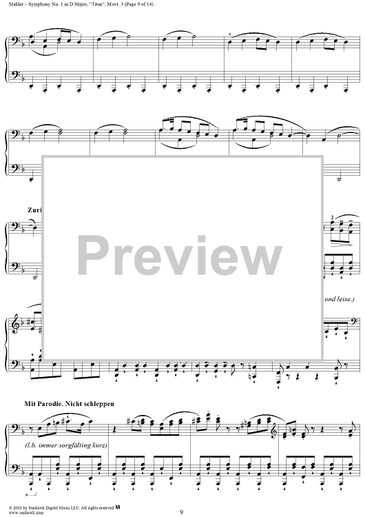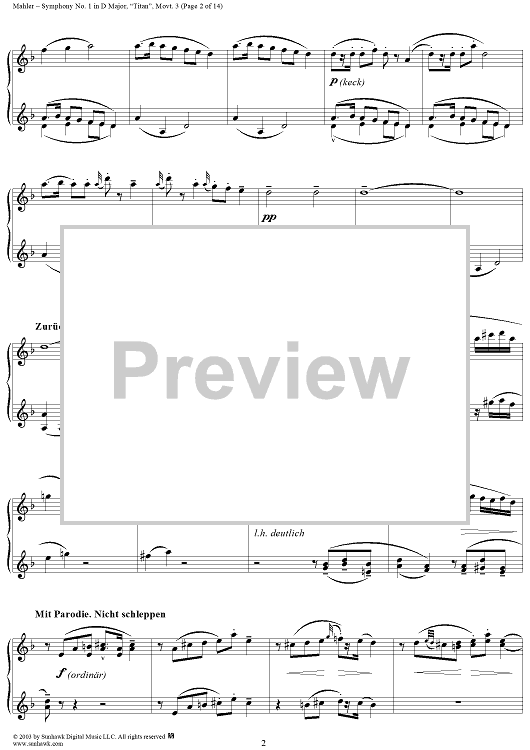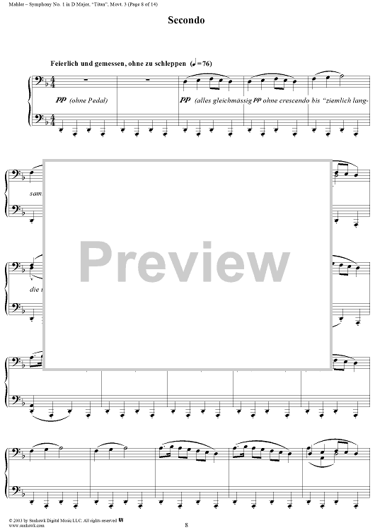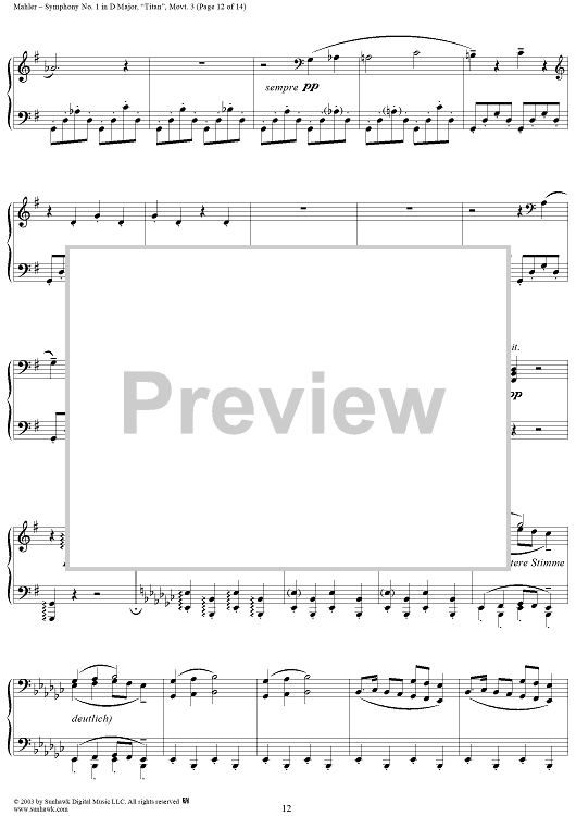 Digital Sheet Music for Symphony No. 1 in D Major, "Titan", Movement 3 by Gustav Mahler scored for 1 Piano, 4 Hands; id:294538