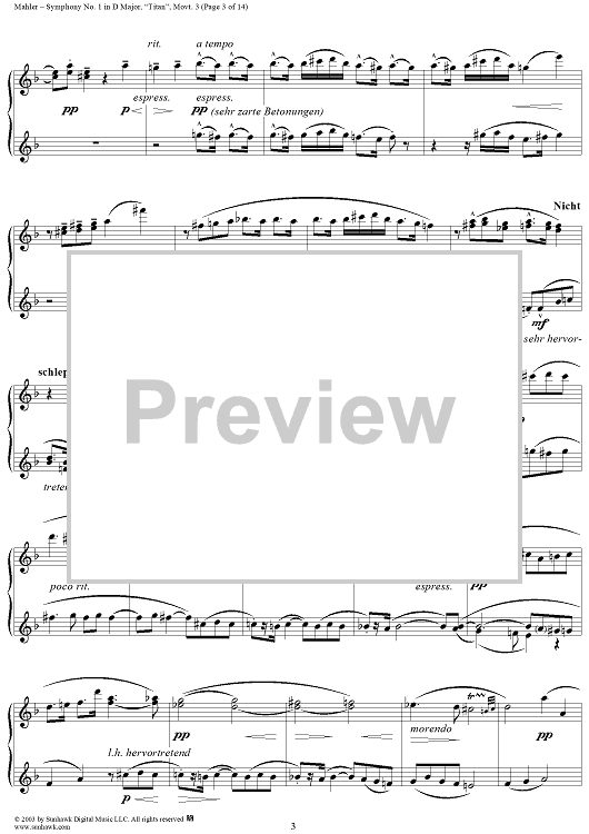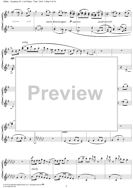 "Symphony No. 1 in D Major, "Titan", Movement 3" Sheet Music by Gustav Mahler