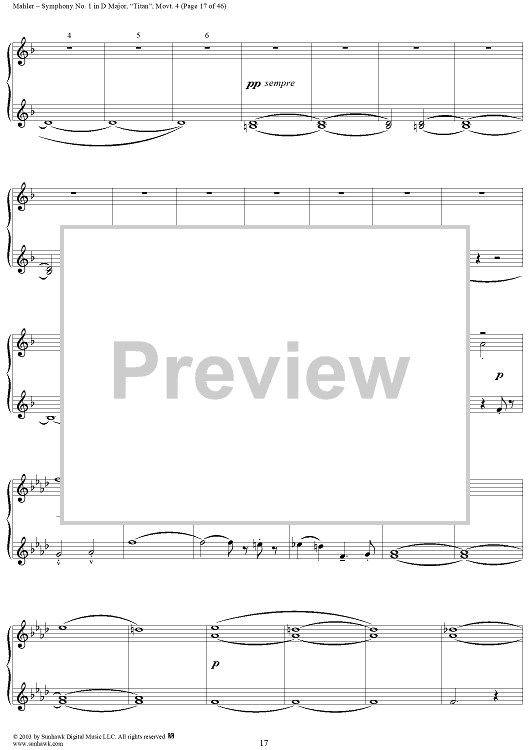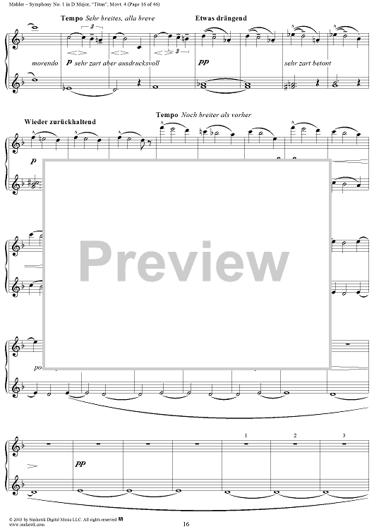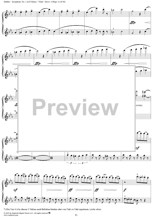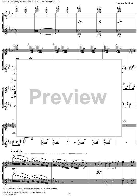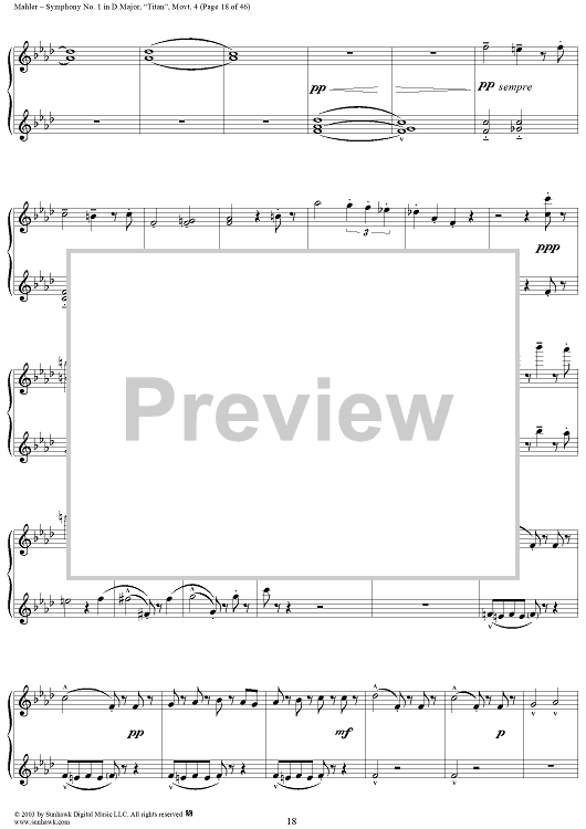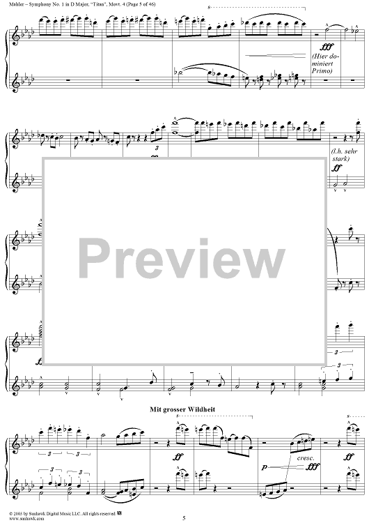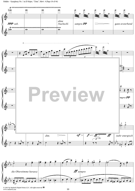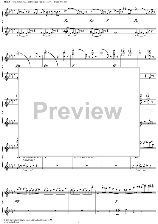 Digital Sheet Music for Symphony No. 1 in D Major, "Titan", Movement 4 by Gustav Mahler scored for 1 Piano, 4 Hands; id:294539