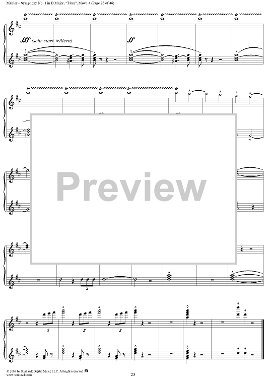 "Symphony No. 1 in D Major, "Titan", Movement 4" Sheet Music by Gustav Mahler