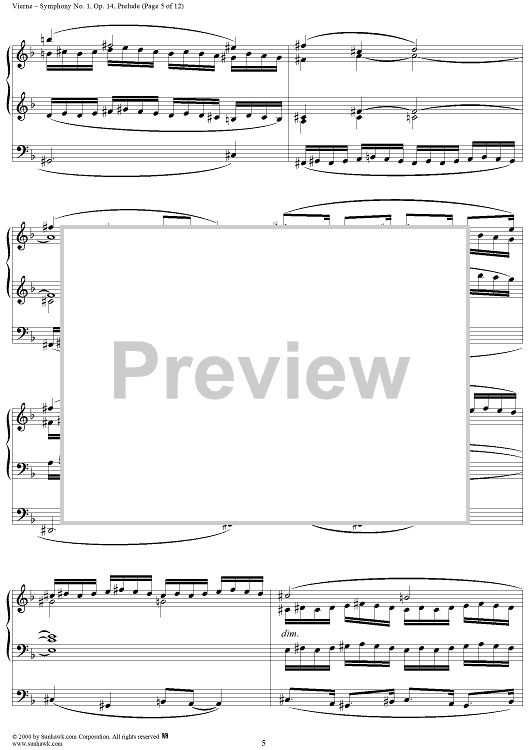 Digital Sheet Music for Symphony No. 1, Movement 1 by Louis Vierne scored for Organ Solo; id:233809