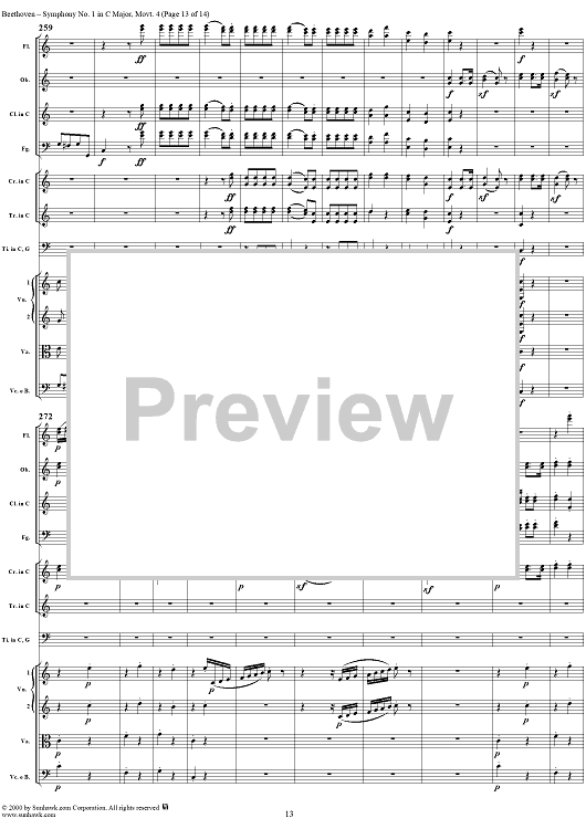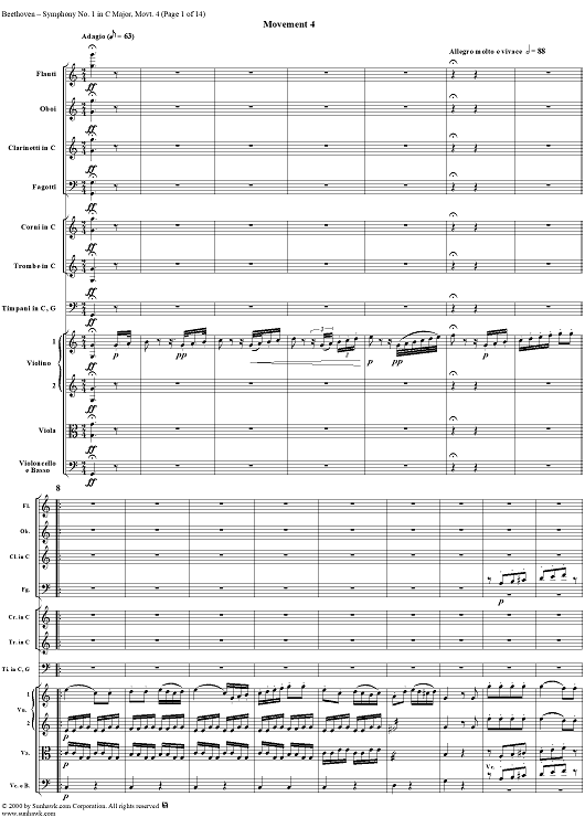 Digital Sheet Music for Symphony No. 1, Movement 4 - Full Score by Ludwig van Beethoven scored for Orchestra; id:234943