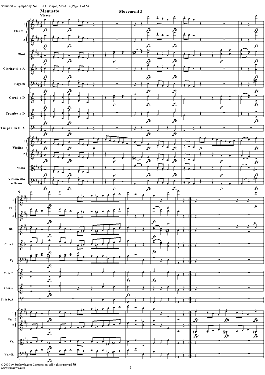 "Symphony No. 3 in D Major (D200) Movement 3 - Full Score" Sheet Music by Franz Schubert