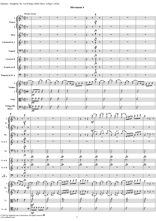 "Symphony No. 3 in D Major (D200) Movement 4 - Full Score" Sheet Music by Franz Schubert