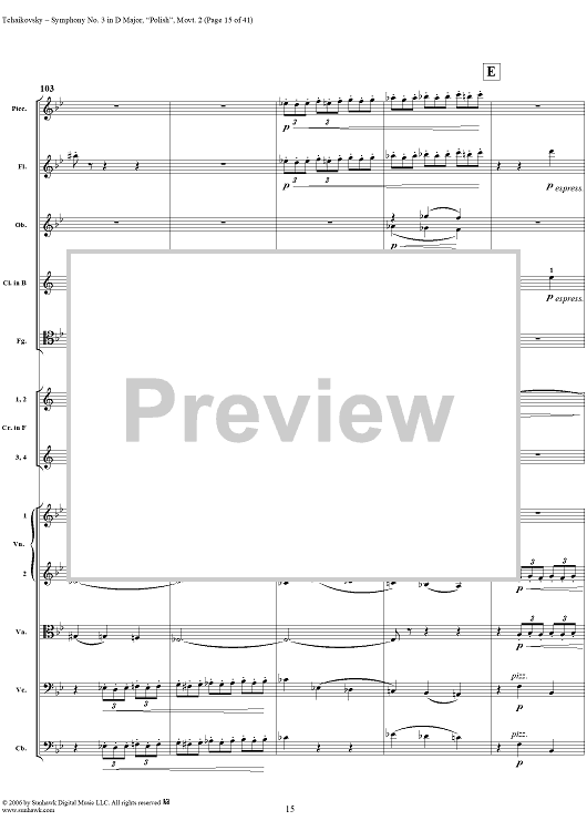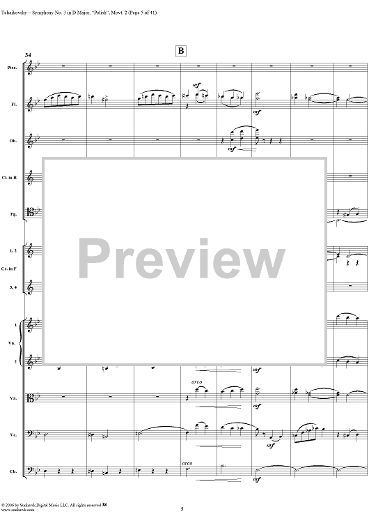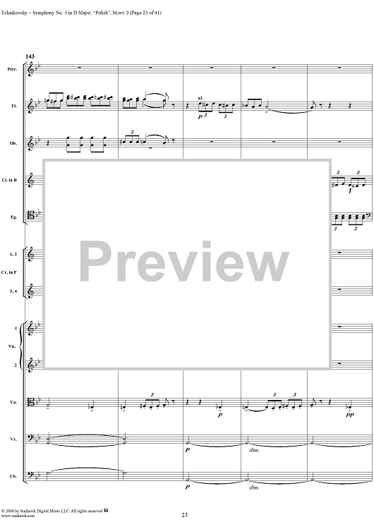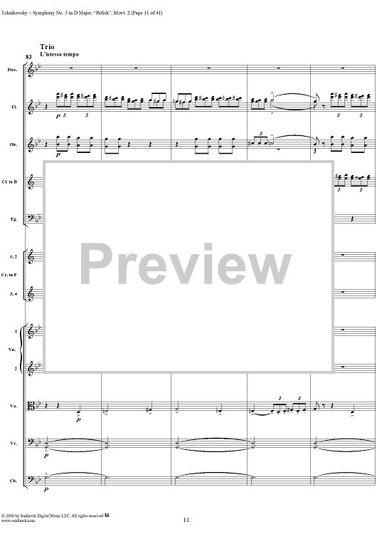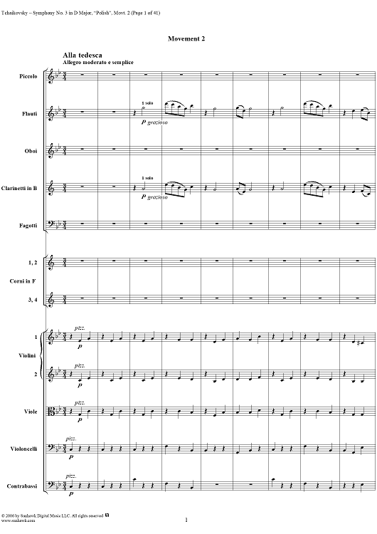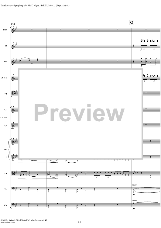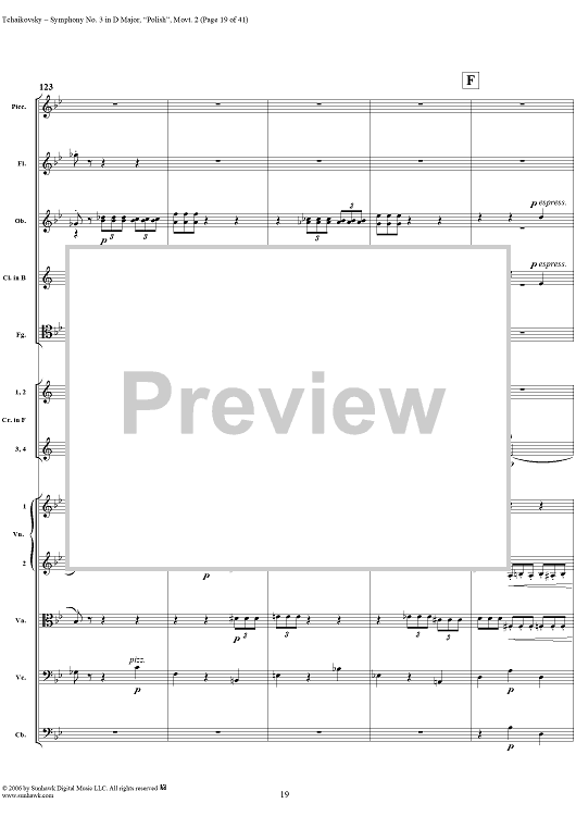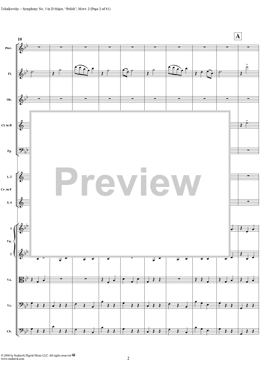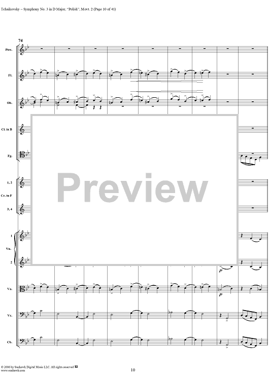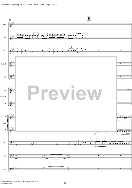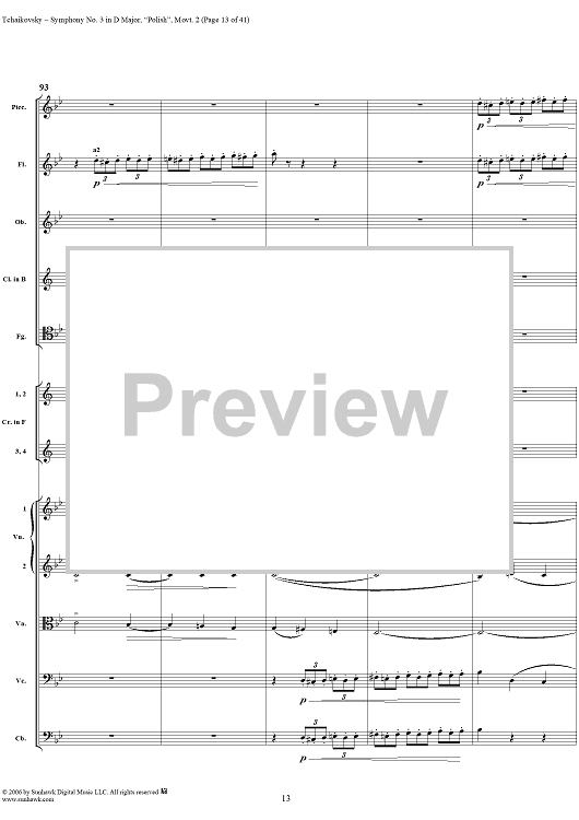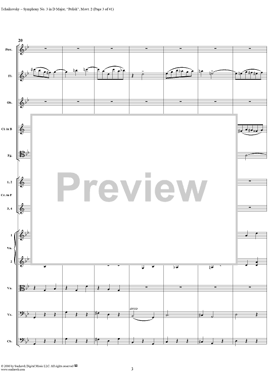 Digital Sheet Music for Symphony No. 3 in D Major, "Polish", Movt. 2 - Full Score by Peter Ilyich Tchaikovsky scored for Orchestra; id:311828