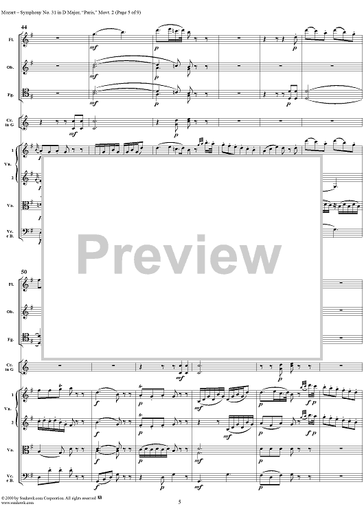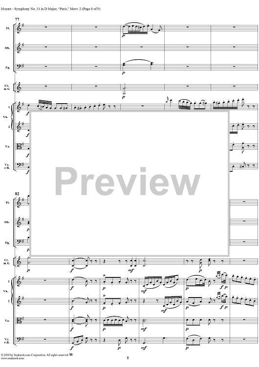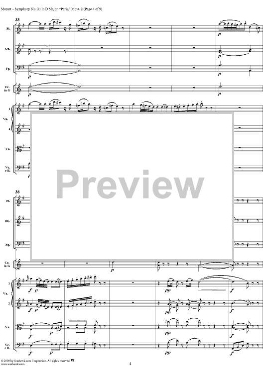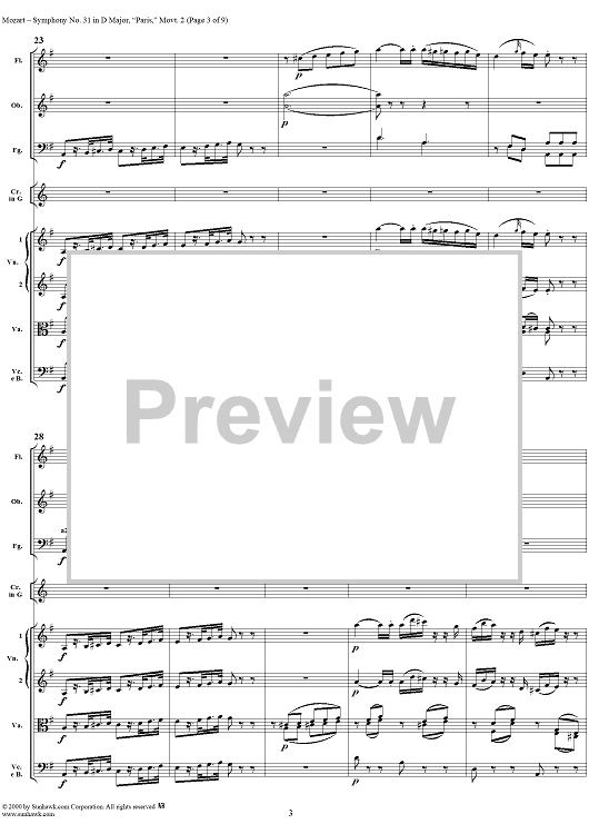 Digital Sheet Music for Symphony No. 31 in D Major, Movement 2 - Full Score by Wolfgang Amadeus Mozart scored for Orchestra; id:241309