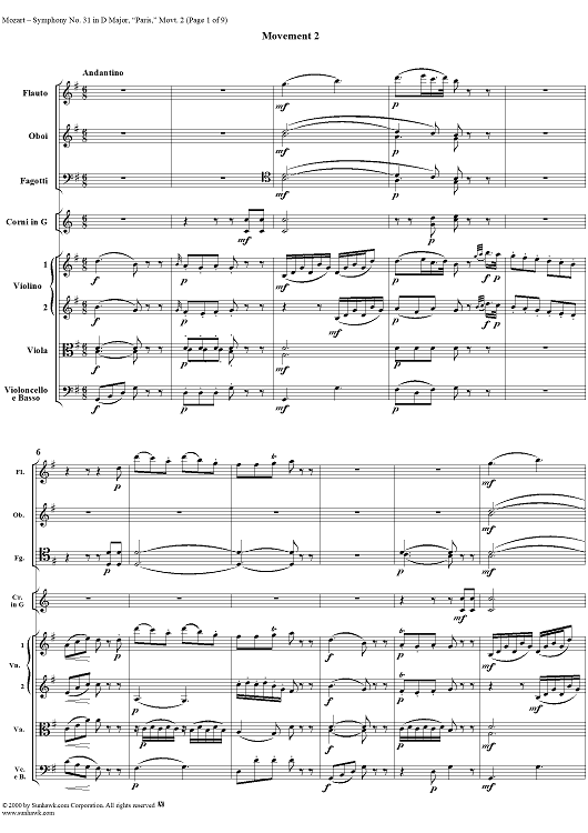 "Symphony No. 31 in D Major, Movement 2 - Full Score" Sheet Music by Wolfgang Amadeus Mozart