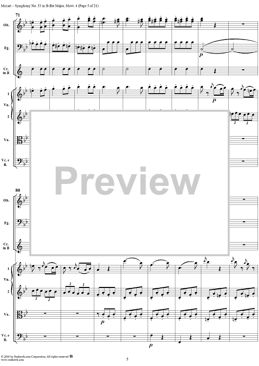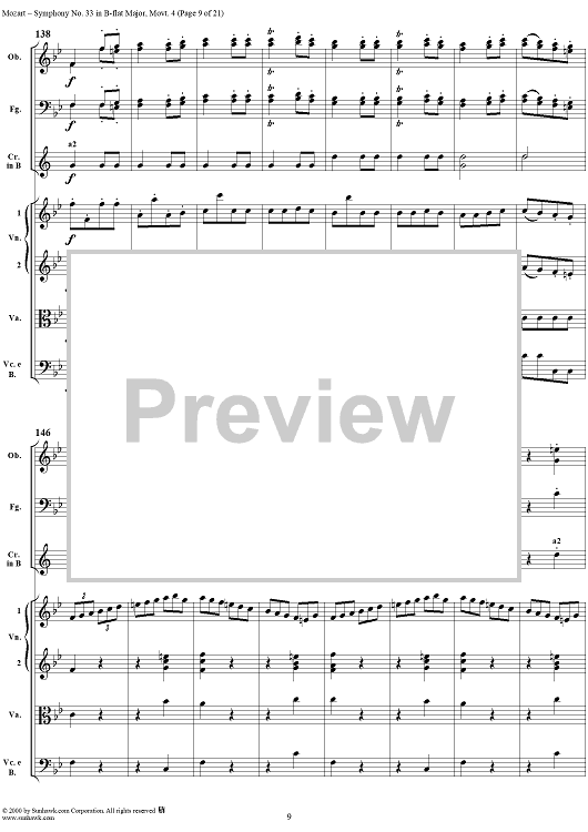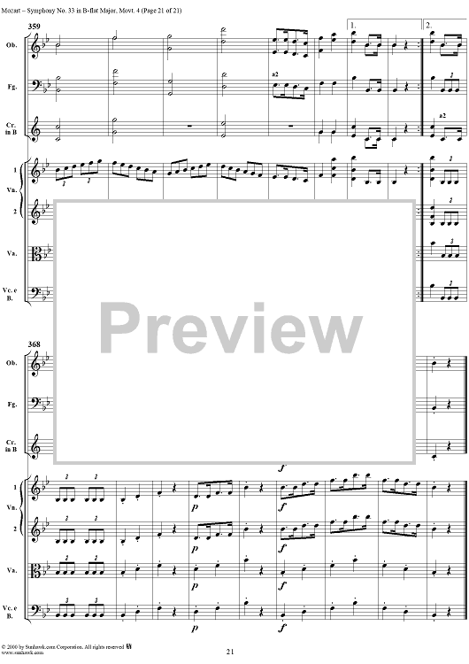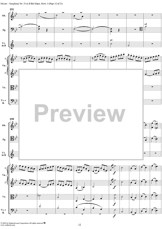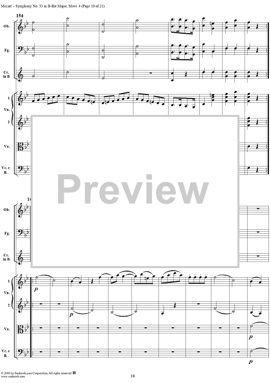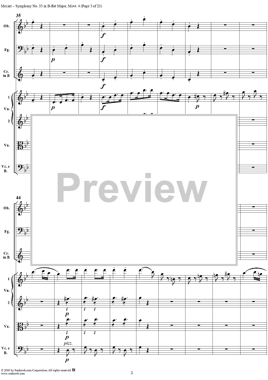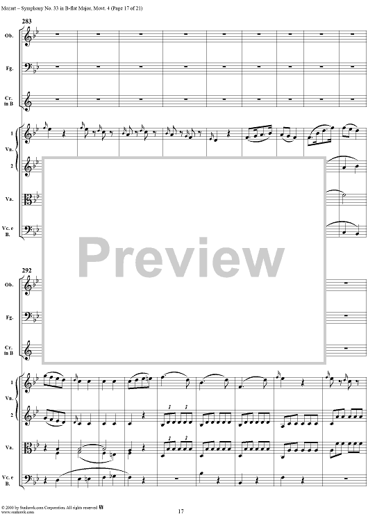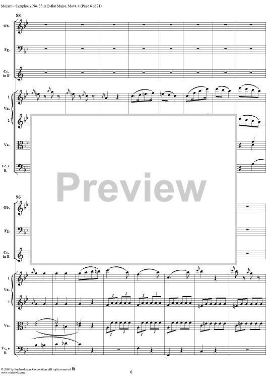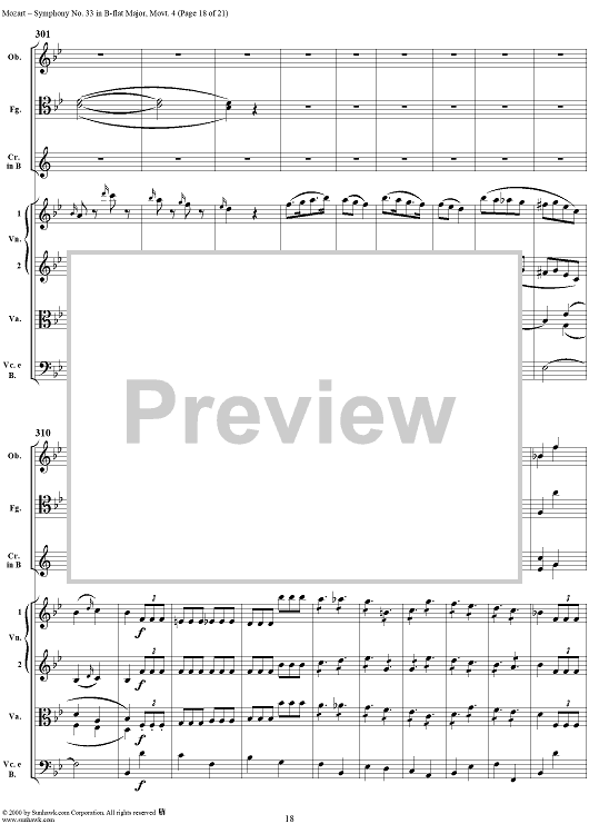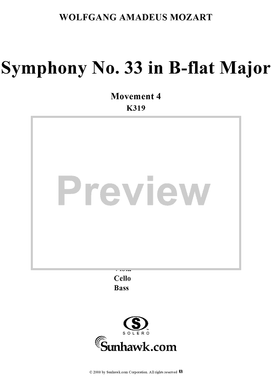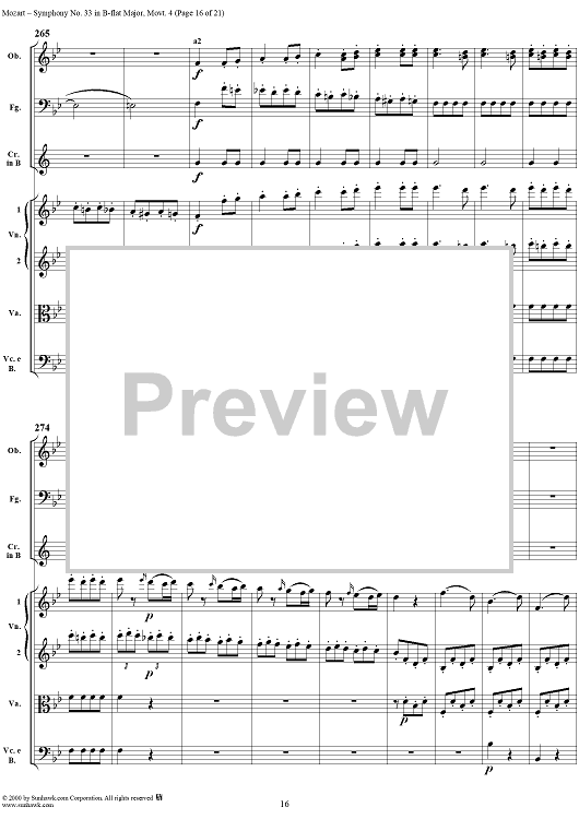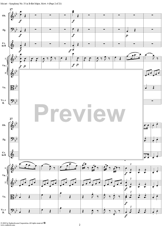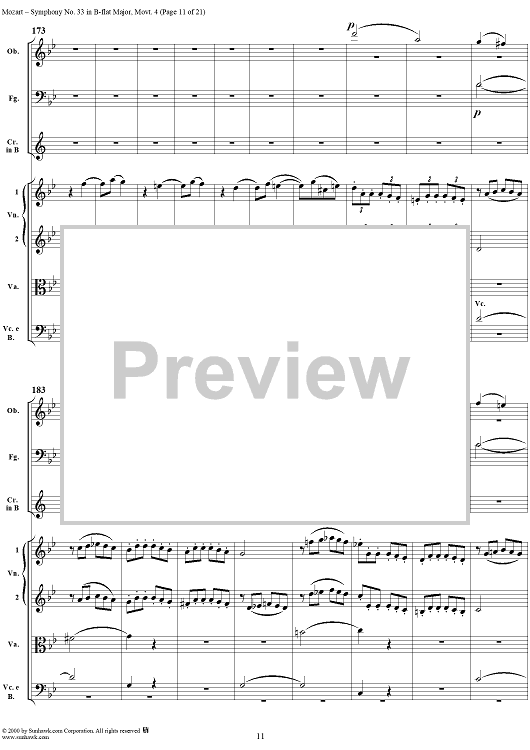 Digital Sheet Music for Symphony No. 33 in B-flat Major, Movement 4 - Full Score by Wolfgang Amadeus Mozart scored for Orchestra; id:235629