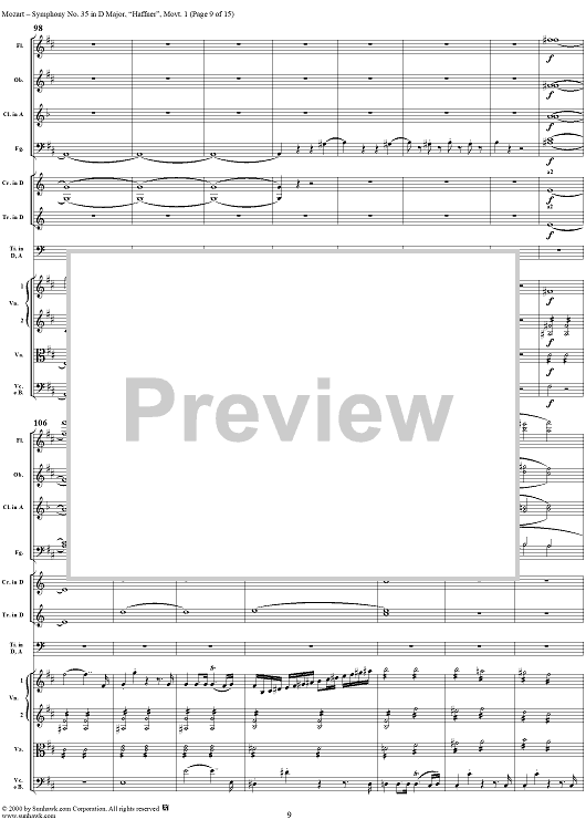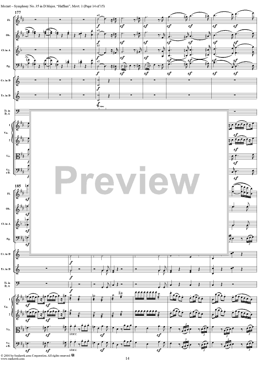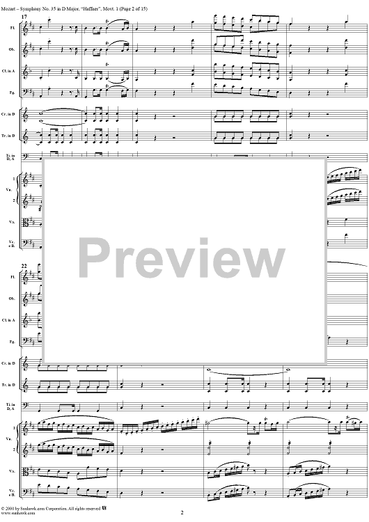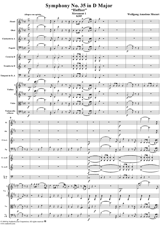 Digital Sheet Music for Symphony No. 35 in D Major, Movement 1 - Full Score by Wolfgang Amadeus Mozart scored for Orchestra; id:240892