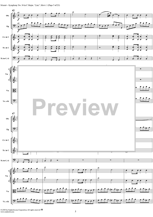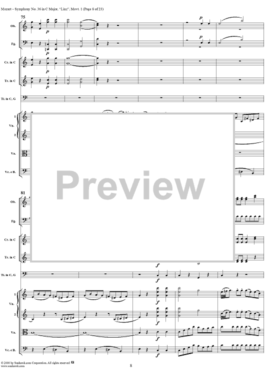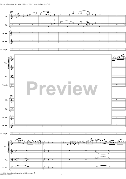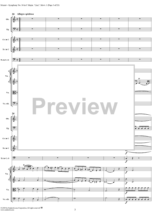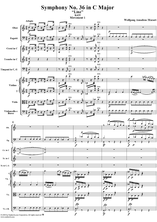 Digital Sheet Music for Symphony No. 36 in C Major, Movement 1 - Full Score by Wolfgang Amadeus Mozart scored for Orchestra; id:235554