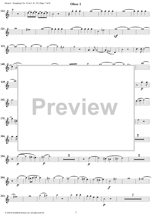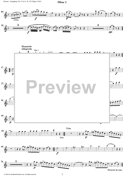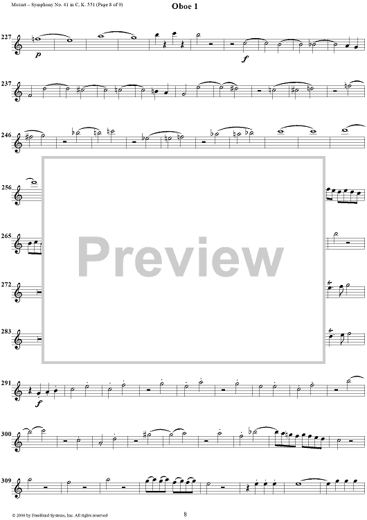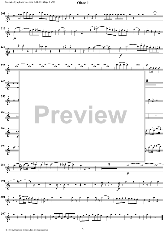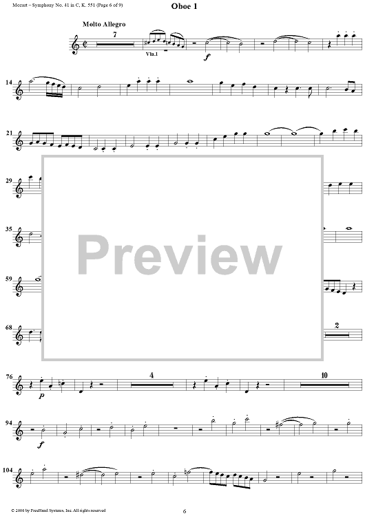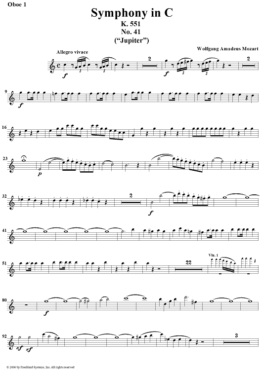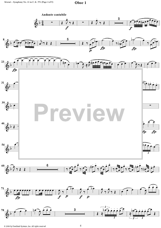 Digital Sheet Music for Symphony No. 41 in C Major, K551 ("Jupiter") - Oboe 1 by Wolfgang Amadeus Mozart scored for Orchestra; id:95254
