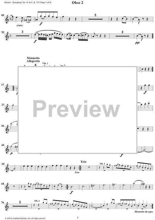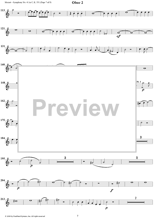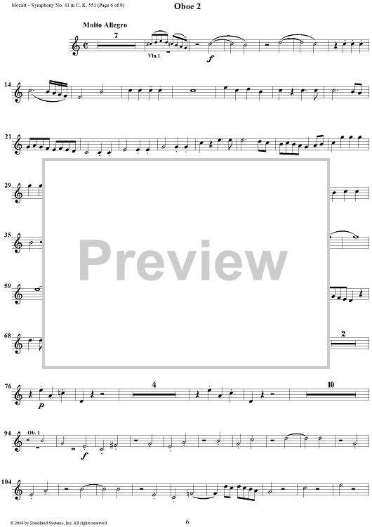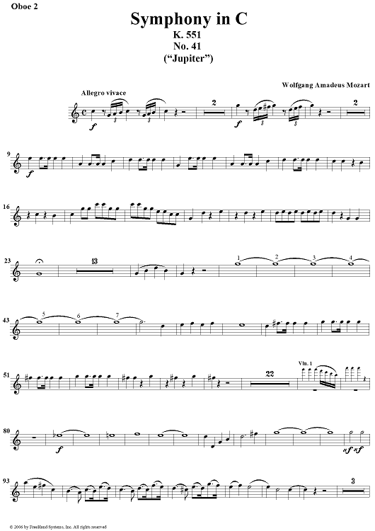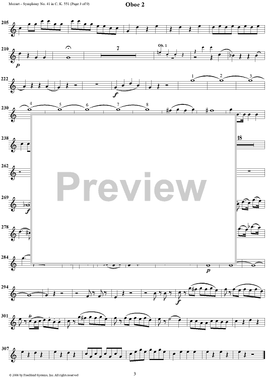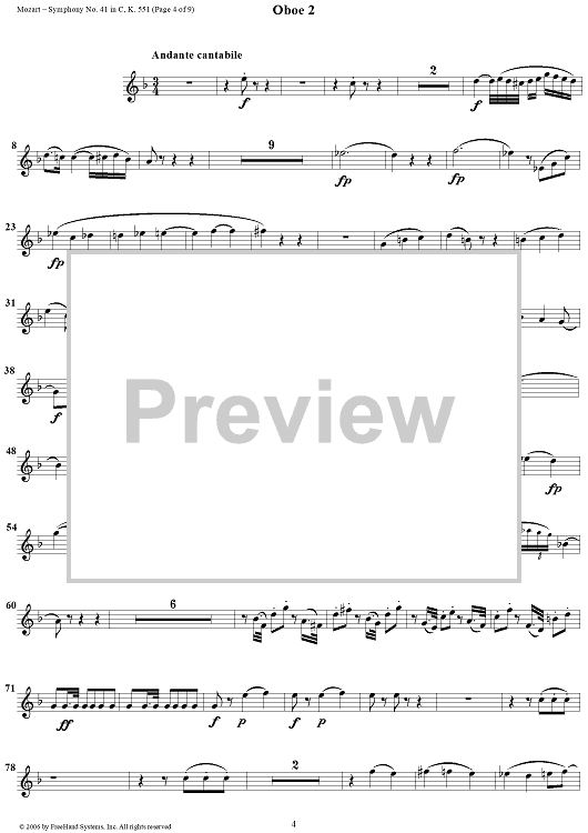 Digital Sheet Music for Symphony No. 41 in C Major, K551 ("Jupiter") - Oboe 2 by Wolfgang Amadeus Mozart scored for Orchestra; id:95255