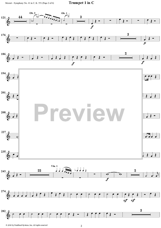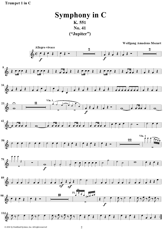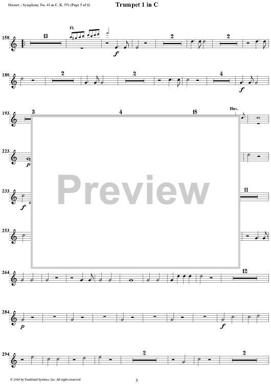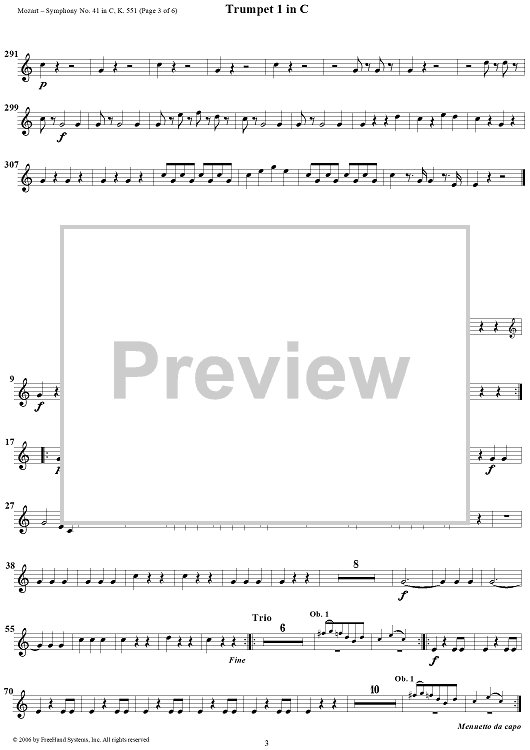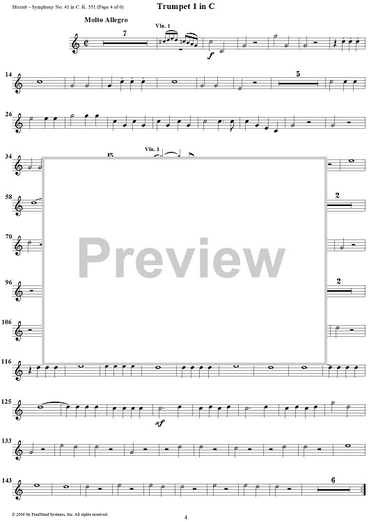 Digital Sheet Music for Symphony No. 41 in C Major, K551 ("Jupiter") - Trumpet 1 by Wolfgang Amadeus Mozart scored for Orchestra; id:95257