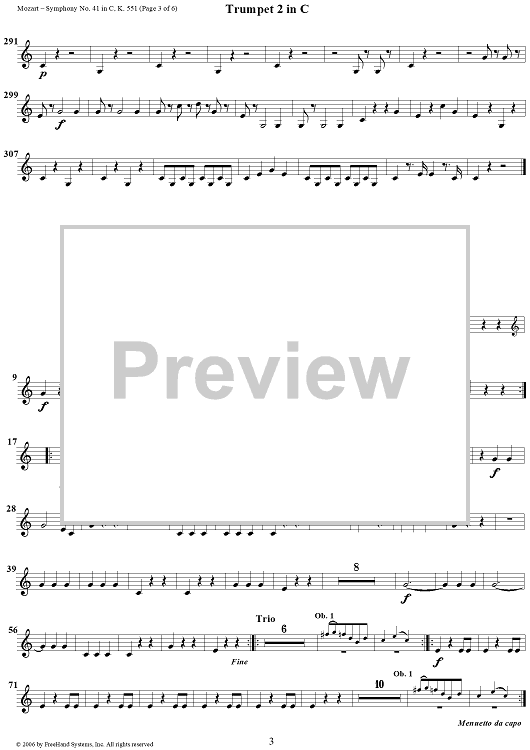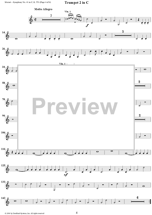 Digital Sheet Music for Symphony No. 41 in C Major, K551 ("Jupiter") - Trumpet 2 by Wolfgang Amadeus Mozart scored for Orchestra; id:95258