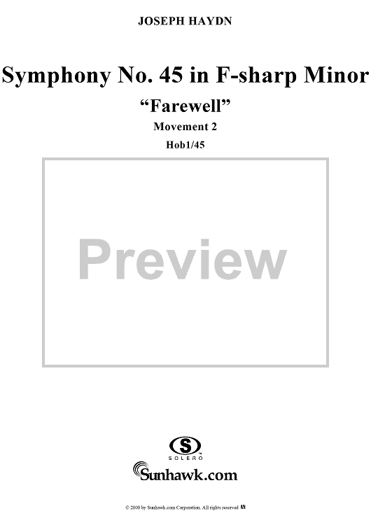 "Symphony No. 45 in F-sharp Minor ("Farewell") movt. 2 - Hob1/45 - Full Score" Sheet Music by Franz Joseph Haydn