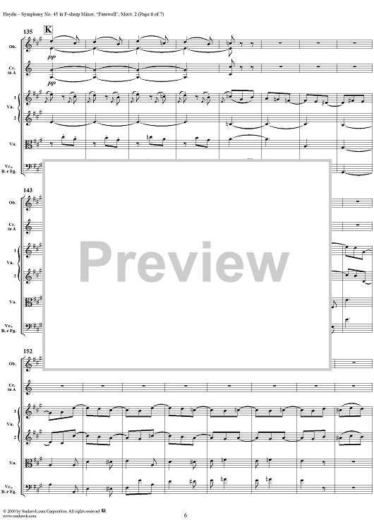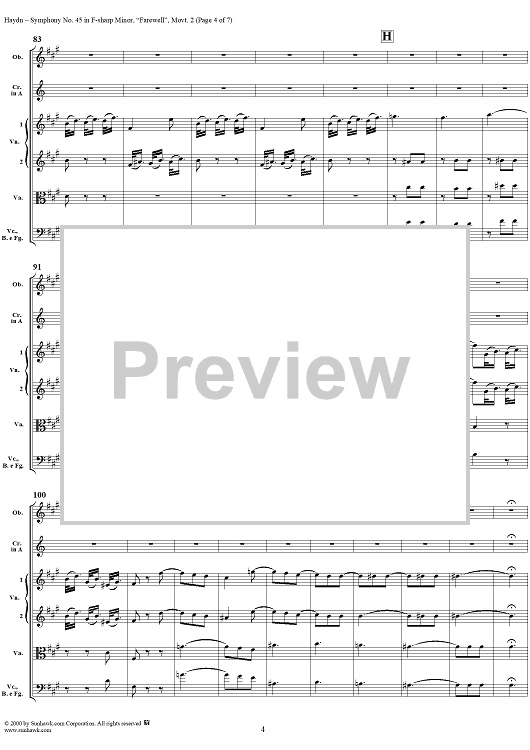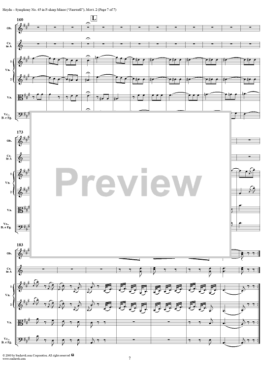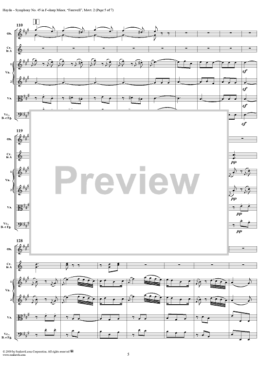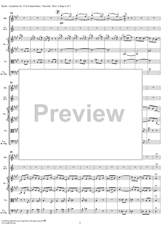 Digital Sheet Music for Symphony No. 45 in F-sharp Minor ("Farewell") movt. 2 - Hob1/45 - Full Score by Franz Joseph Haydn scored for Orchestra; id:266066