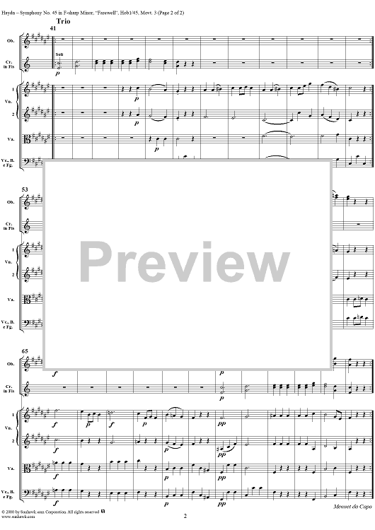 Digital Sheet Music for Symphony No. 45 in F-sharp Minor ("Farewell") movt. 3 - Hob1/45 - Full Score by Franz Joseph Haydn scored for Orchestra; id:266058