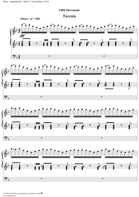 Digital Sheet Music for Symphony No. 5 in F Minor, Op. 42, No. 1 - Movement 5 ("Toccata") by Charles-Marie Widor scored for Organ Solo; id:120565