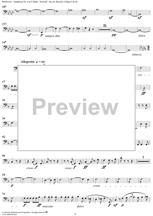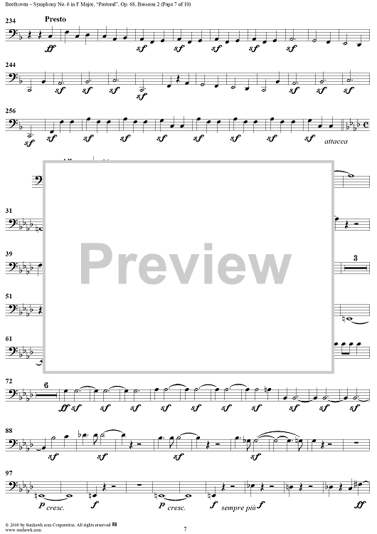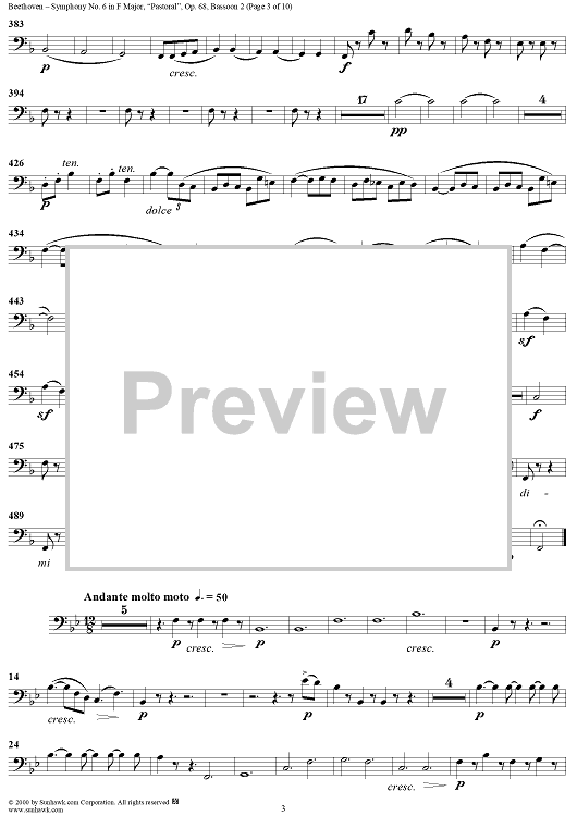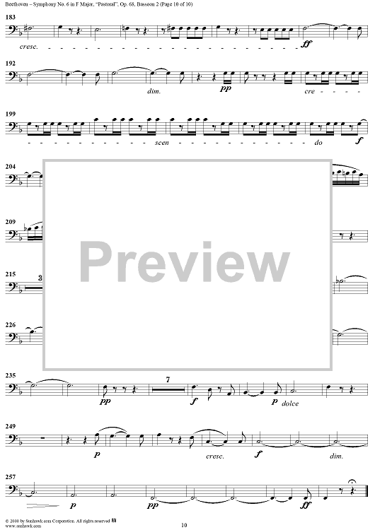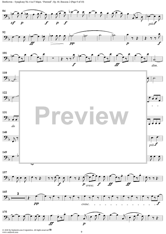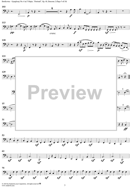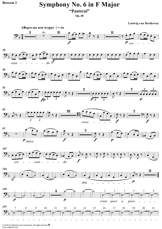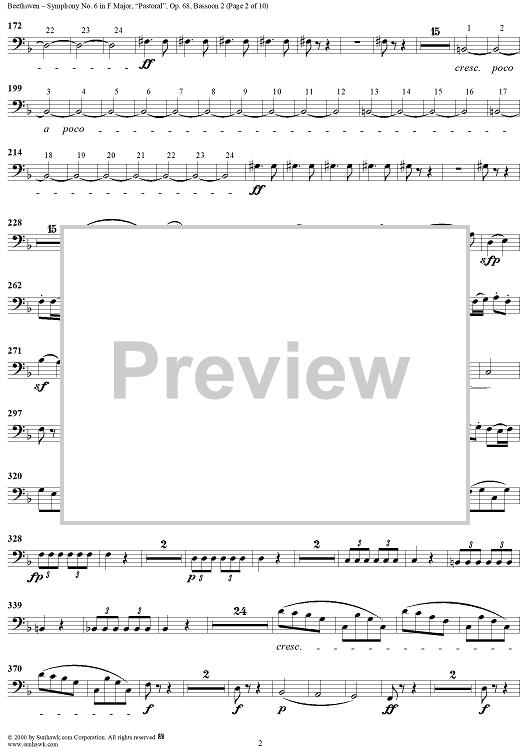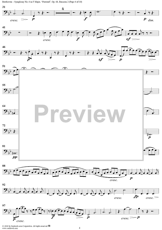 Digital Sheet Music for Symphony No. 6 in F Major, "Pastoral" - Bassoon 2 by Ludwig van Beethoven scored for Orchestra; id:275138