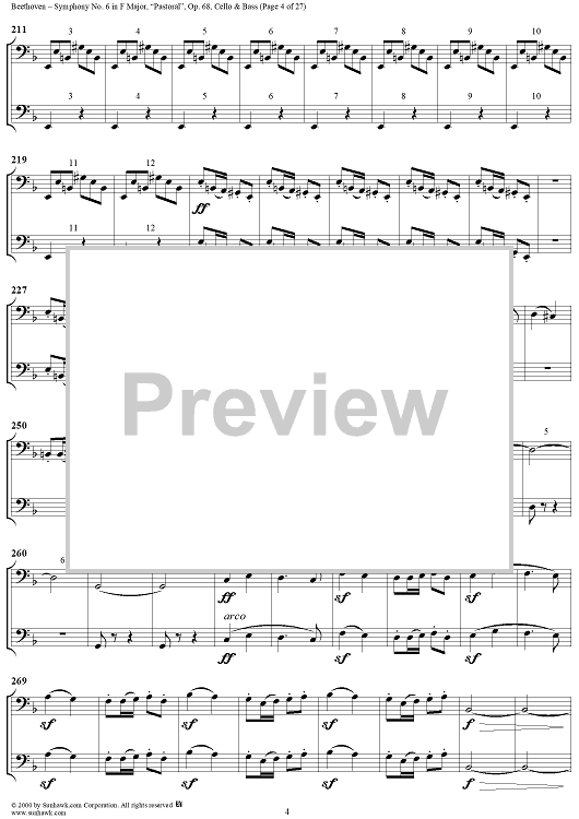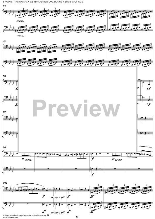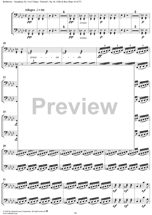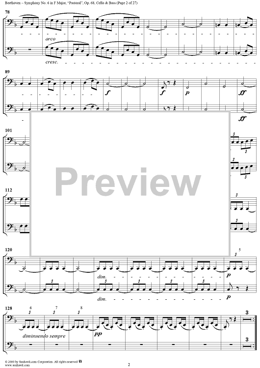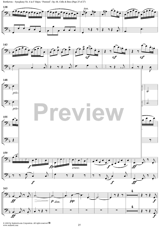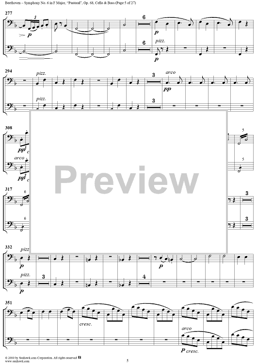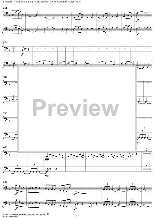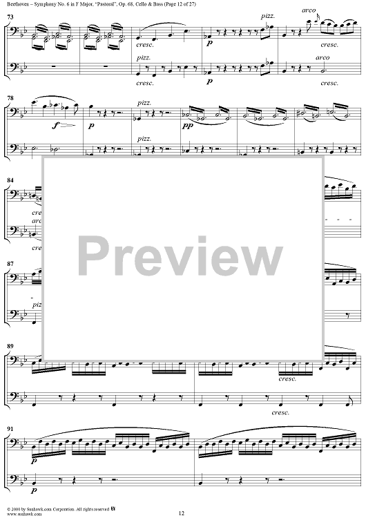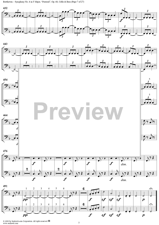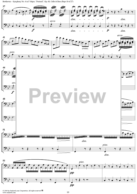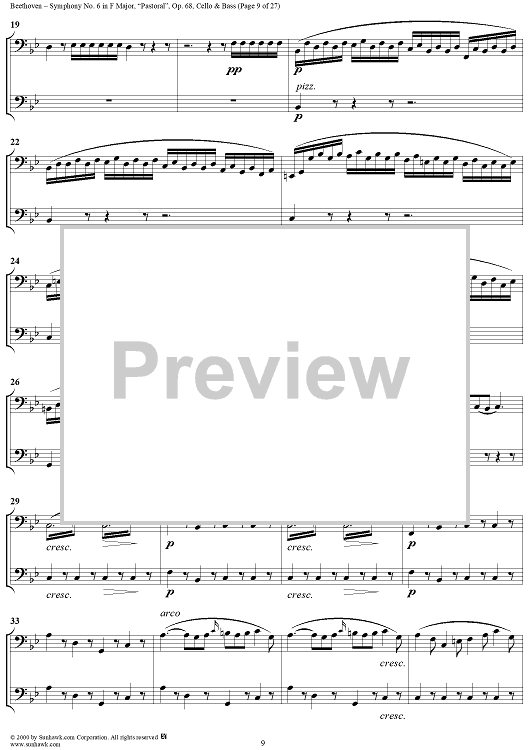 Digital Sheet Music for Symphony No. 6 in F Major, "Pastoral" - Cello/Bass by Ludwig van Beethoven scored for Orchestra; id:275134