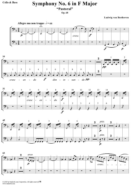 "Symphony No. 6 in F Major, "Pastoral" - Cello/Bass" Sheet Music by Ludwig van Beethoven