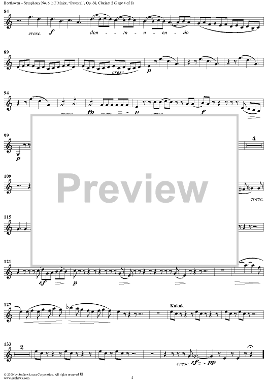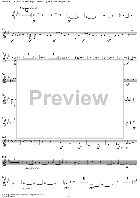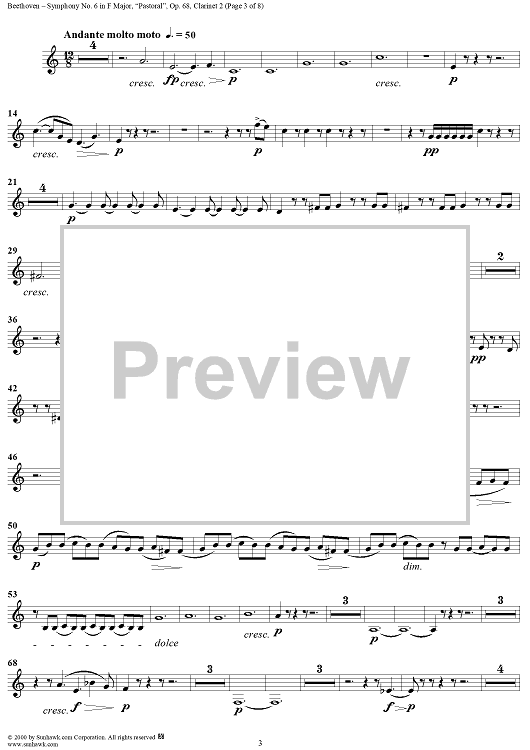 Digital Sheet Music for Symphony No. 6 in F Major, "Pastoral" - Clarinet 2 by Ludwig van Beethoven scored for Orchestra; id:275140