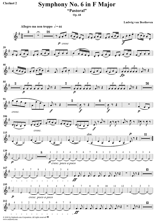 "Symphony No. 6 in F Major, "Pastoral" - Clarinet 2" Sheet Music by Ludwig van Beethoven