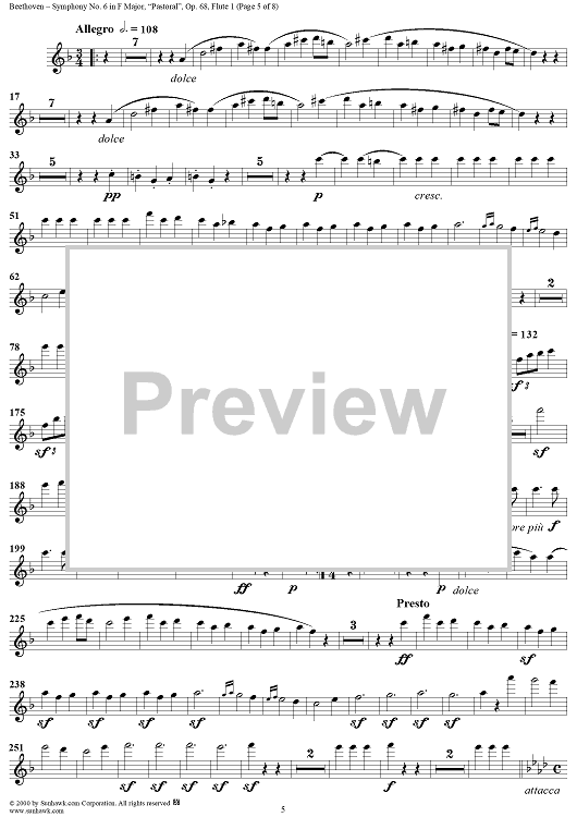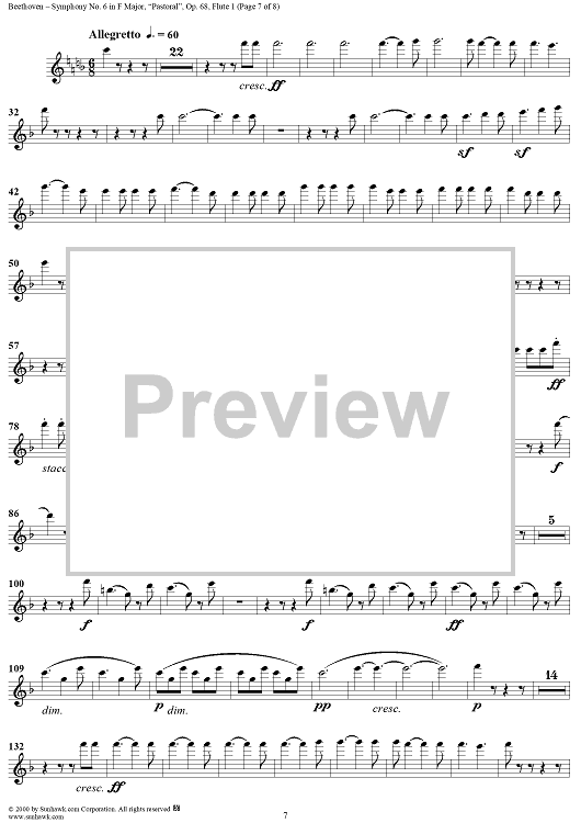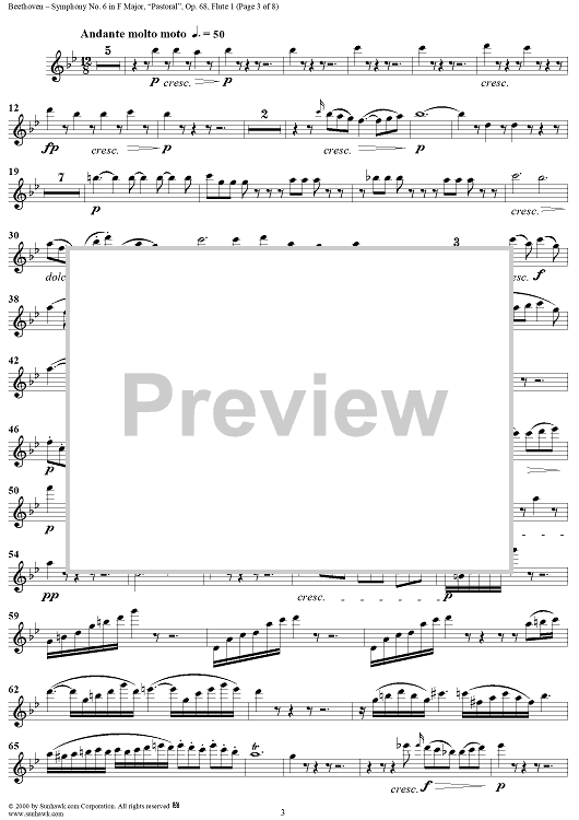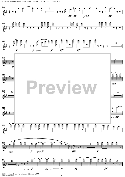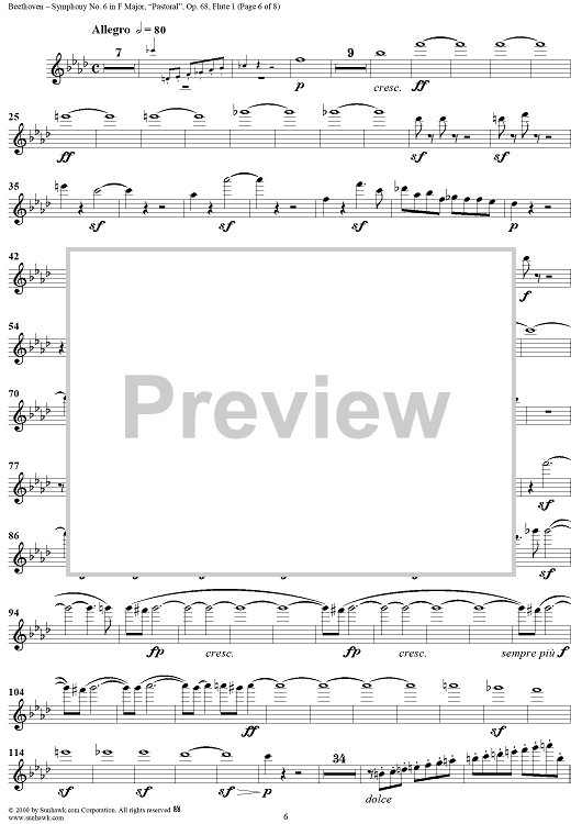 Digital Sheet Music for Symphony No. 6 in F Major, "Pastoral" - Flute 1 by Ludwig van Beethoven scored for Orchestra; id:275135