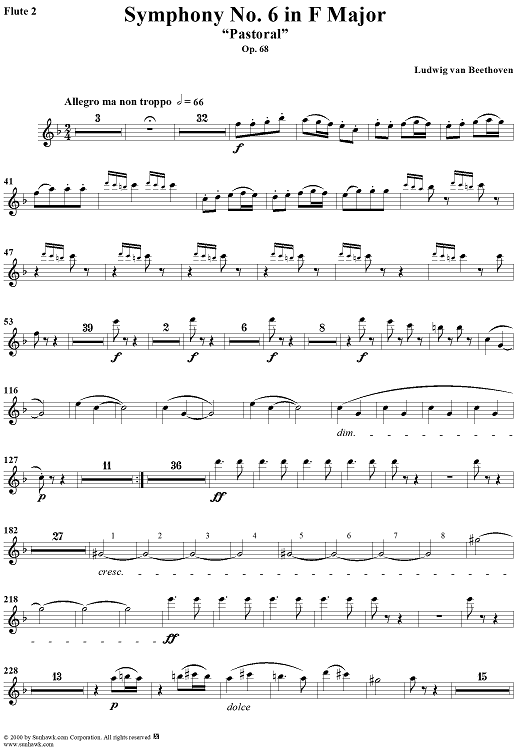 "Symphony No. 6 in F Major, "Pastoral" - Flute 2" Sheet Music by Ludwig van Beethoven