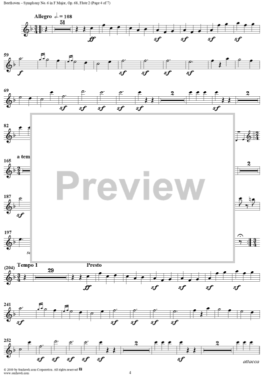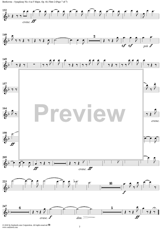 Digital Sheet Music for Symphony No. 6 in F Major, "Pastoral" - Flute 2 by Ludwig van Beethoven scored for Orchestra; id:275141