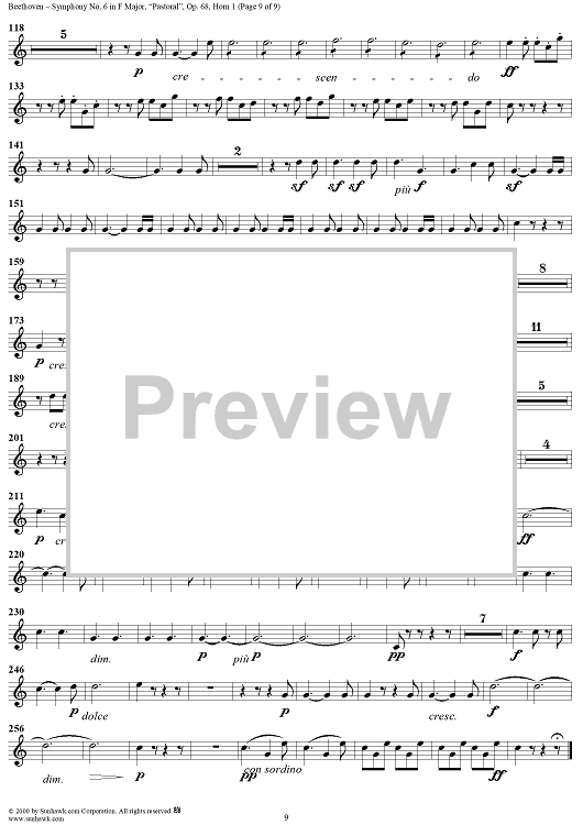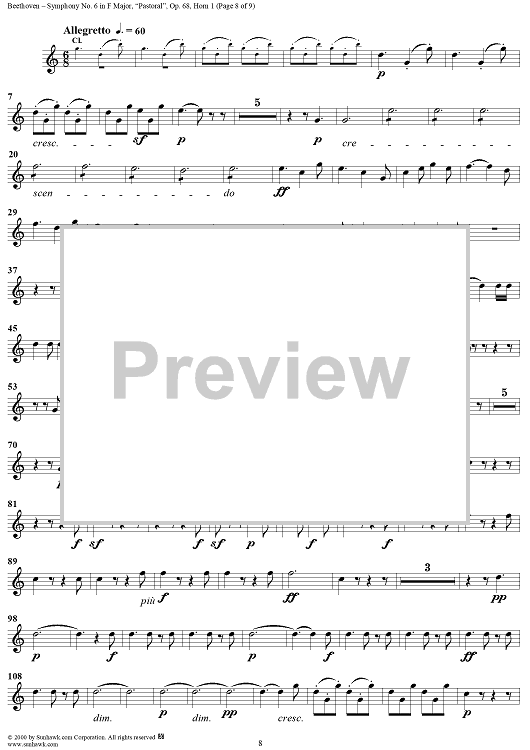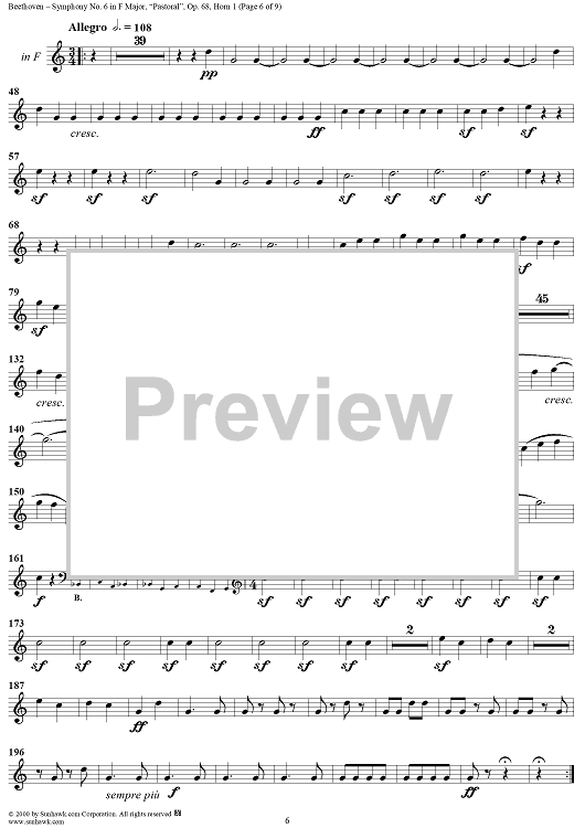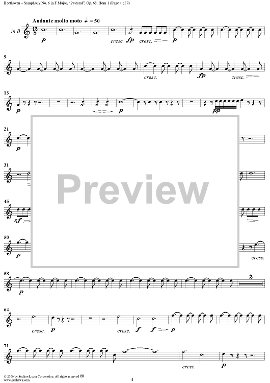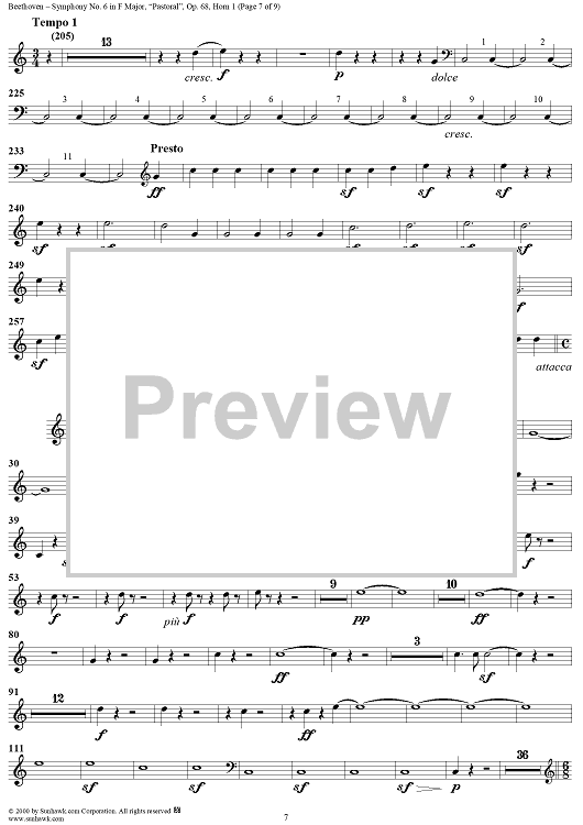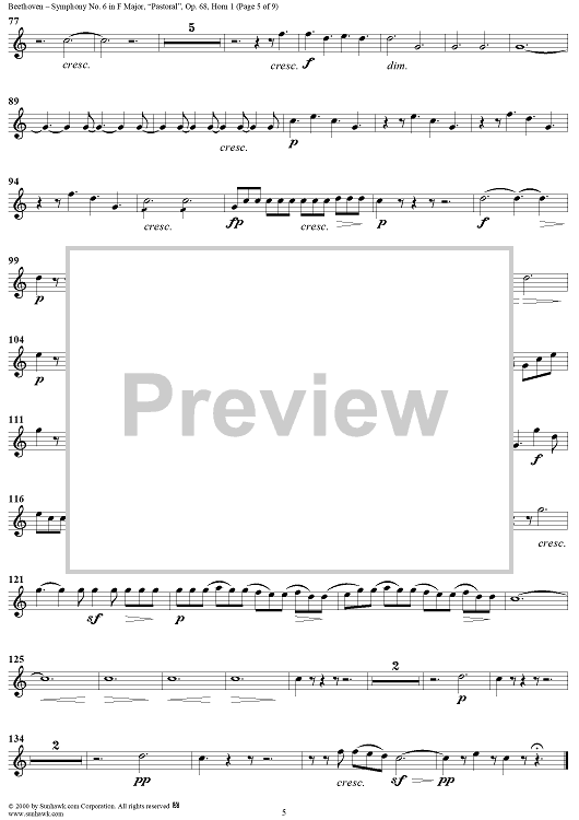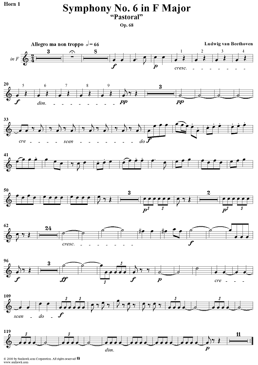 Digital Sheet Music for Symphony No. 6 in F Major, "Pastoral" - Horn 1 by Ludwig van Beethoven scored for Orchestra; id:275142