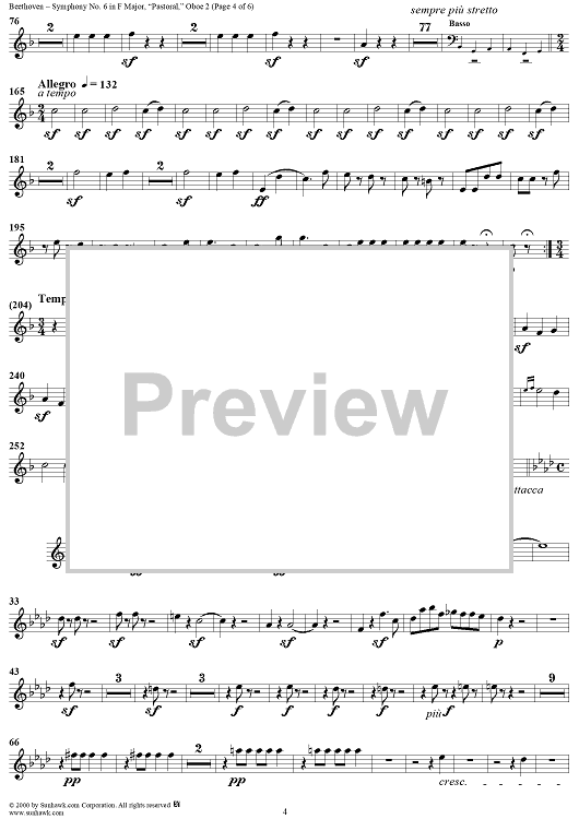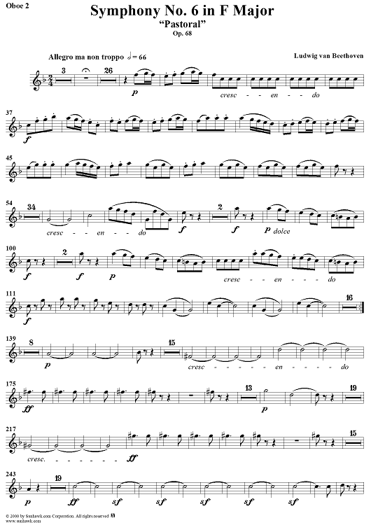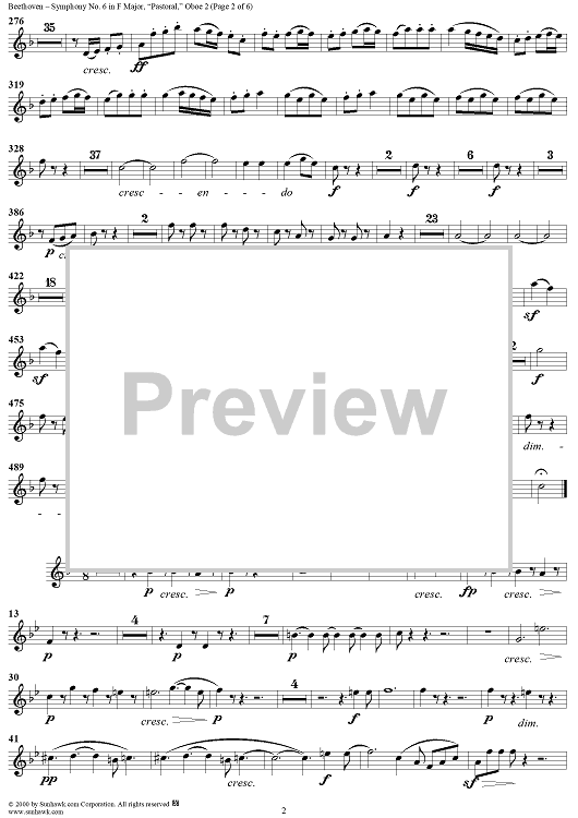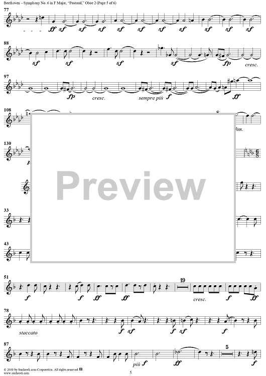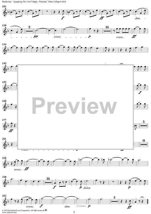Digital Sheet Music for Symphony No. 6 in F Major, "Pastoral" - Oboe 2 by Ludwig van Beethoven scored for Orchestra; id:275145