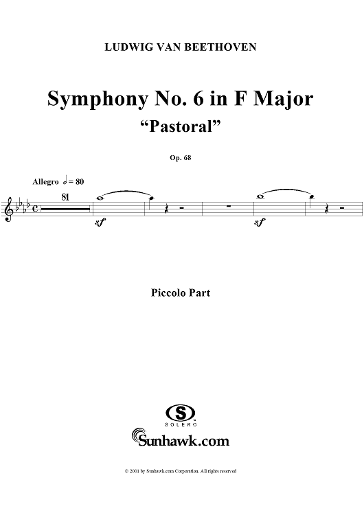 Digital Sheet Music for Symphony No. 6 in F Major, "Pastoral" - Piccolo by Ludwig van Beethoven scored for Orchestra; id:275143