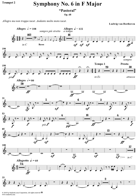 "Symphony No. 6 in F Major, "Pastoral" - Trumpet 2" Sheet Music by Ludwig van Beethoven