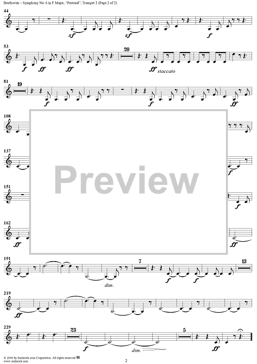 Digital Sheet Music for Symphony No. 6 in F Major, "Pastoral" - Trumpet 2 by Ludwig van Beethoven scored for Orchestra; id:275153