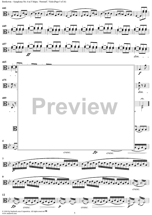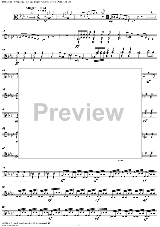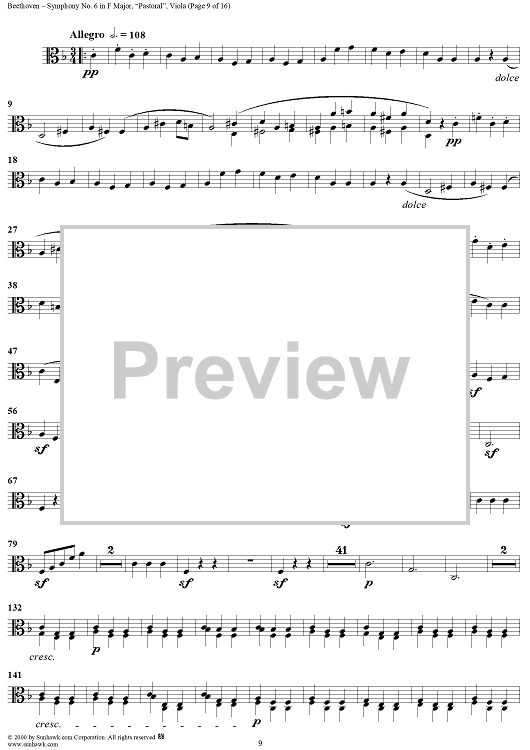 Digital Sheet Music for Symphony No. 6 in F Major, "Pastoral" - Viola by Ludwig van Beethoven scored for Orchestra; id:275162