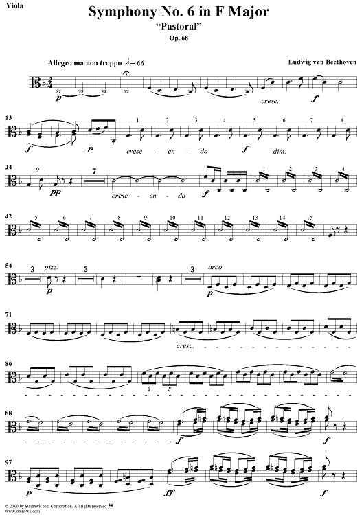"Symphony No. 6 in F Major, "Pastoral" - Viola" Sheet Music by Ludwig van Beethoven