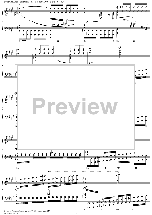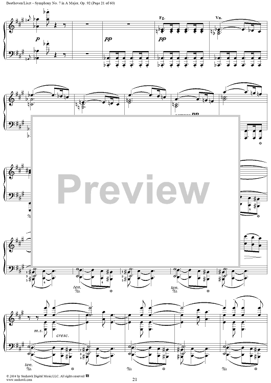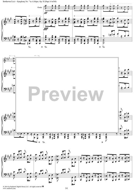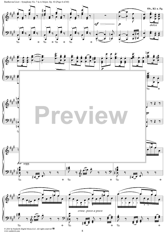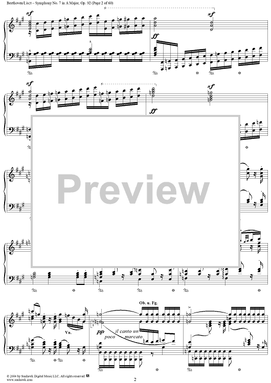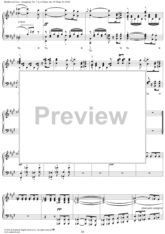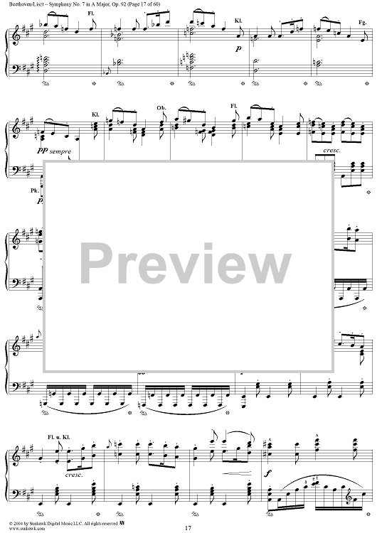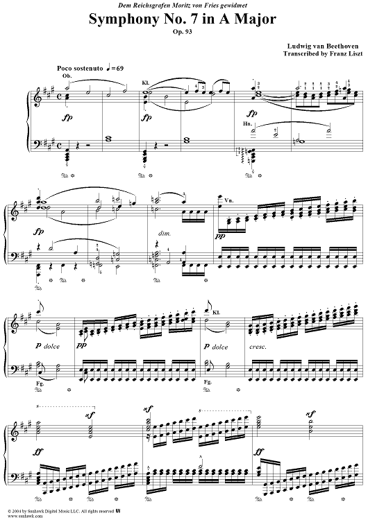 Digital Sheet Music for Symphony No. 7 in A Major, Op. 92 by Ludwig van Beethoven, Franz Liszt scored for Piano Solo; id:296402