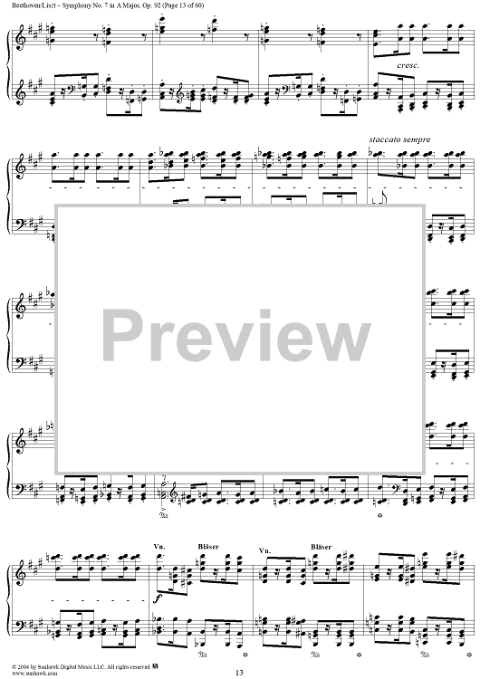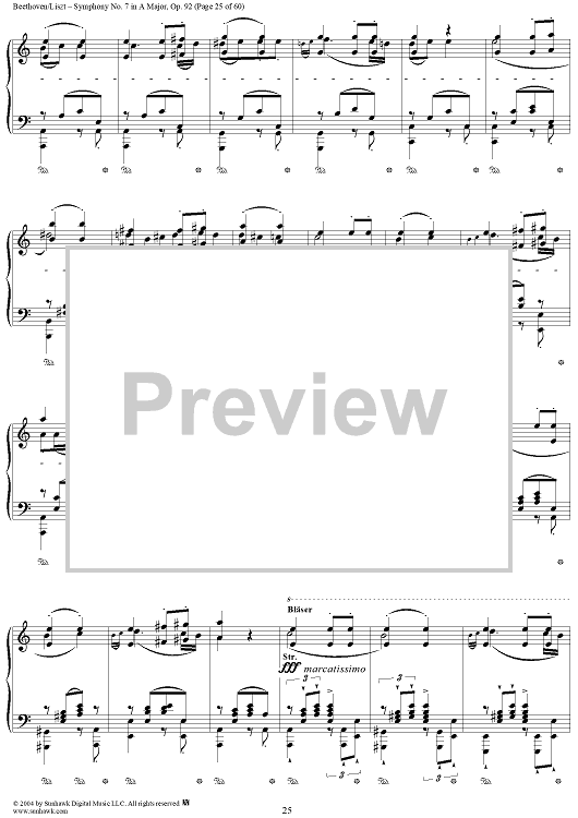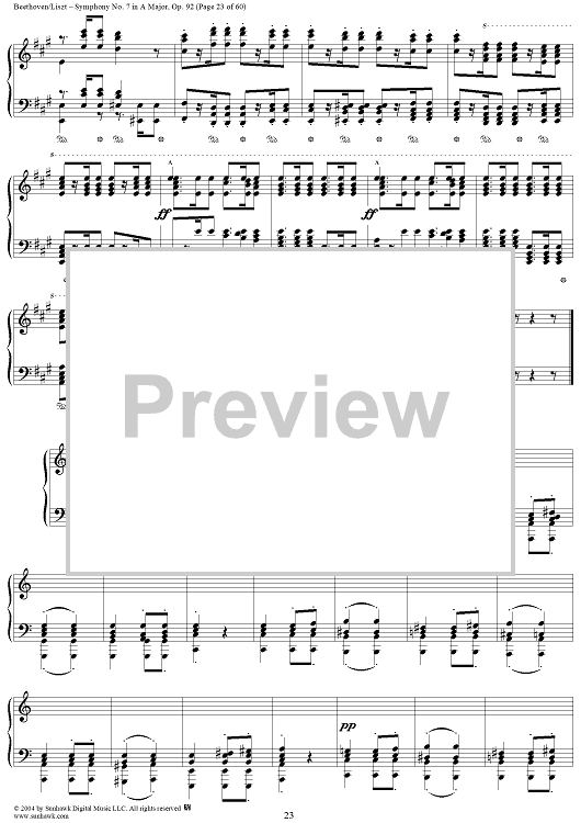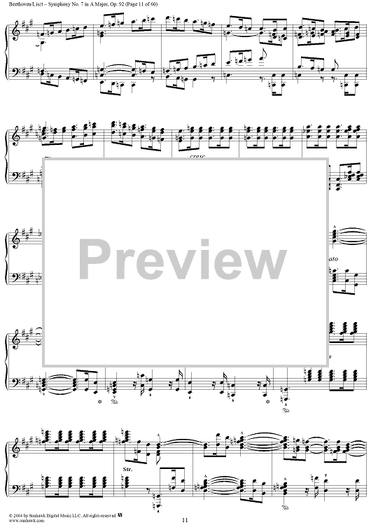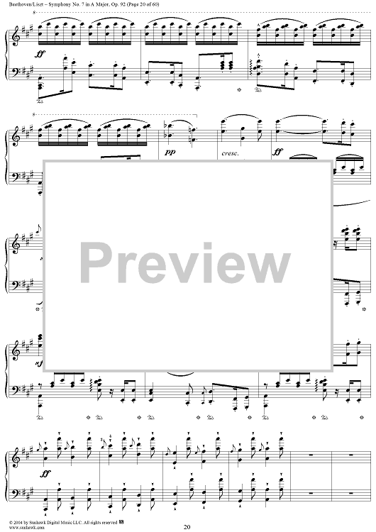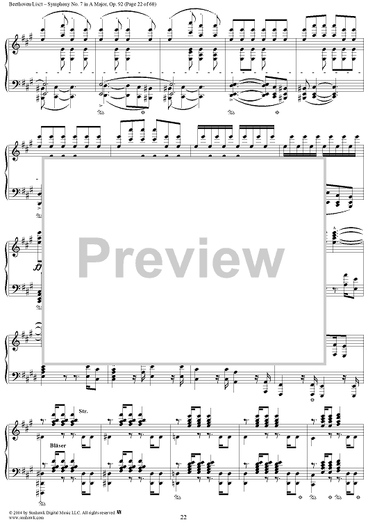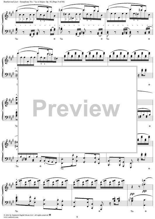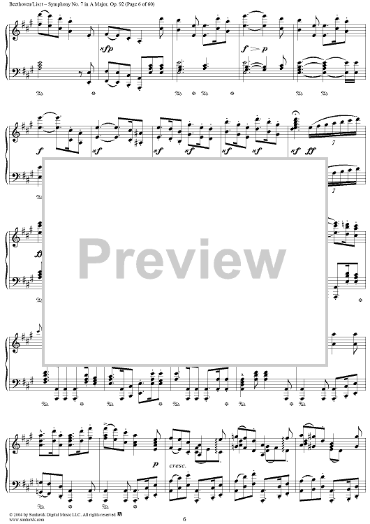 Digital Sheet Music for Symphony No. 7 in A Major, Op. 92 by Ludwig van Beethoven, Franz Liszt scored for Piano Solo; id:296402