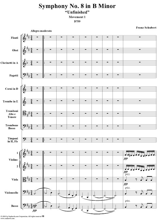"Symphony No. 8 in B Minor, "Unfinished", D759, Movement 1 - Full Score" Sheet Music by Franz Schubert