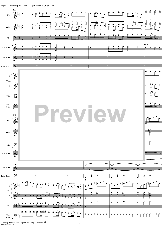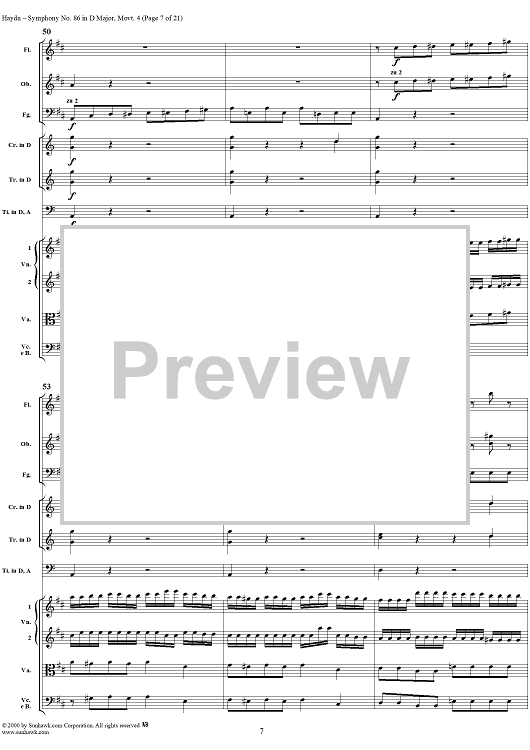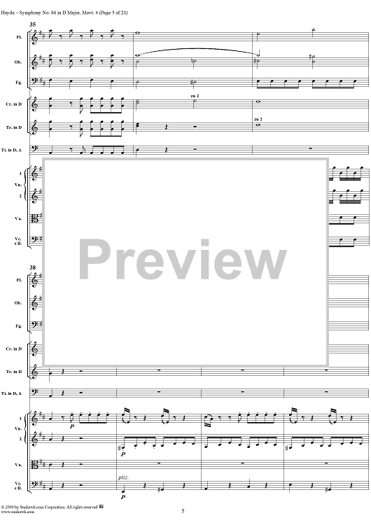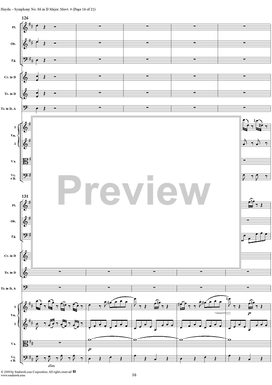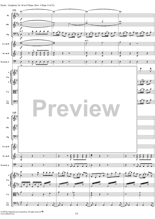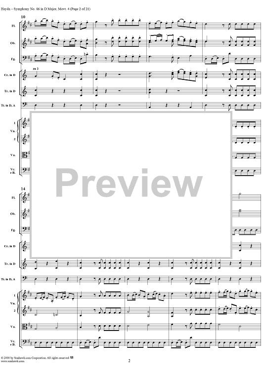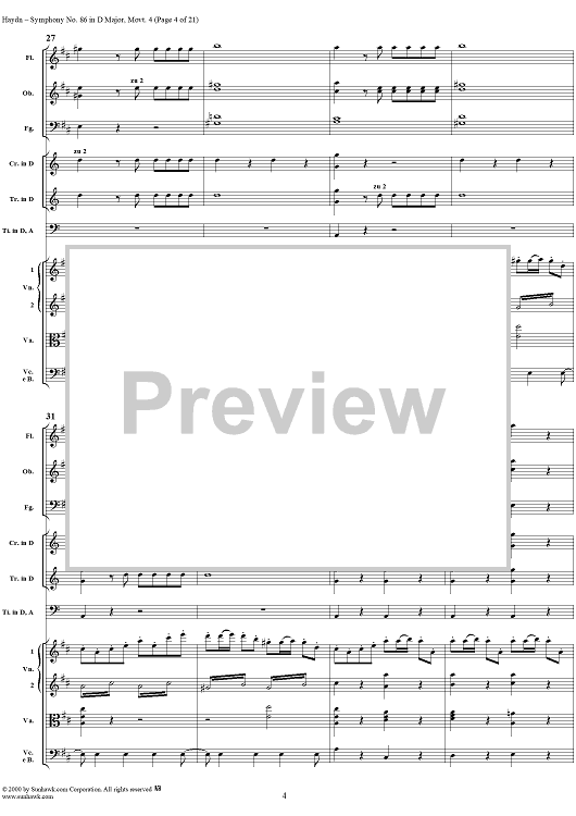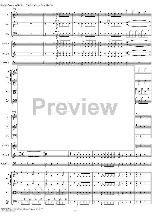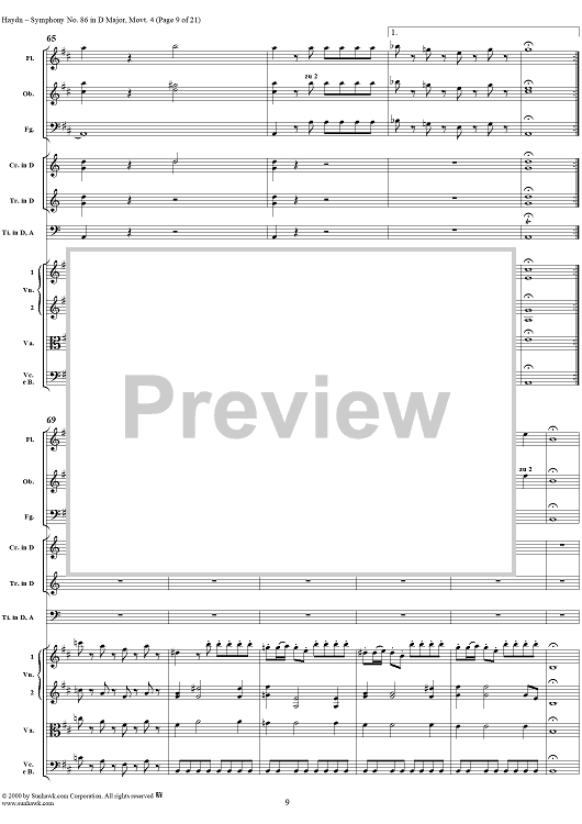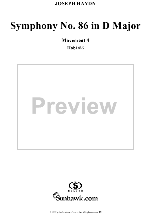 Digital Sheet Music for Symphony No. 86 in D Major, Movement 4 HobI/86 - Full Score by Franz Joseph Haydn scored for Orchestra; id:265911