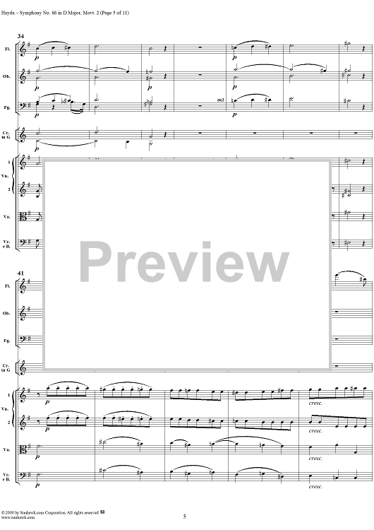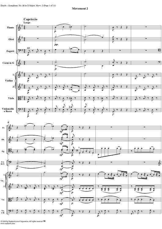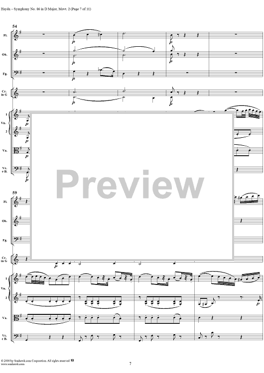 Digital Sheet Music for Symphony No. 86 in D Major movt. 2 - Hob1/86 - Full Score by Franz Joseph Haydn scored for Orchestra; id:265909