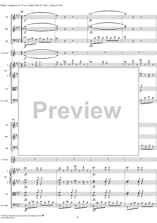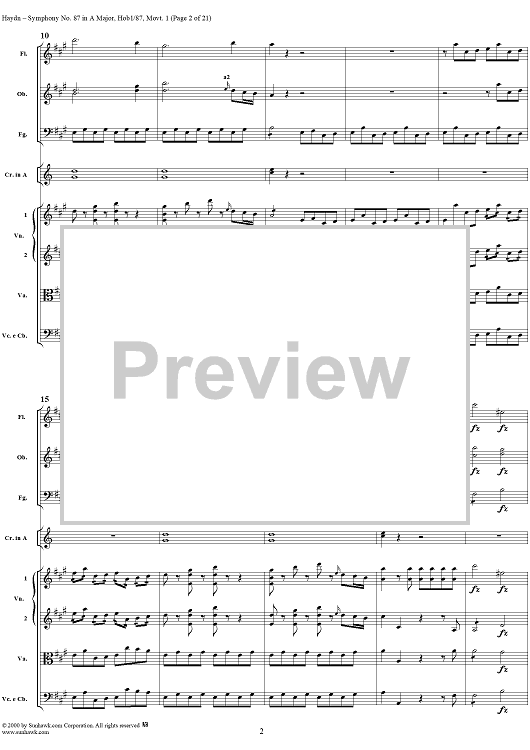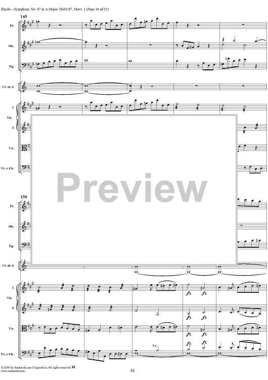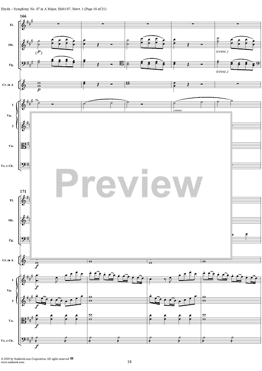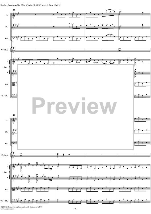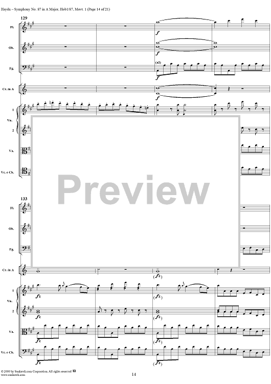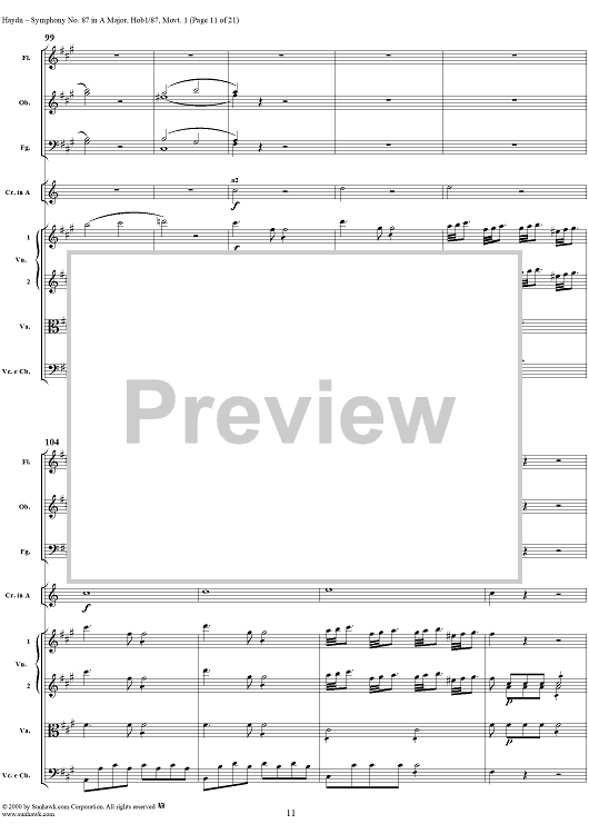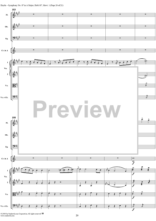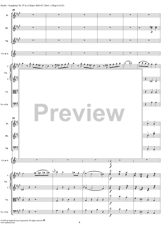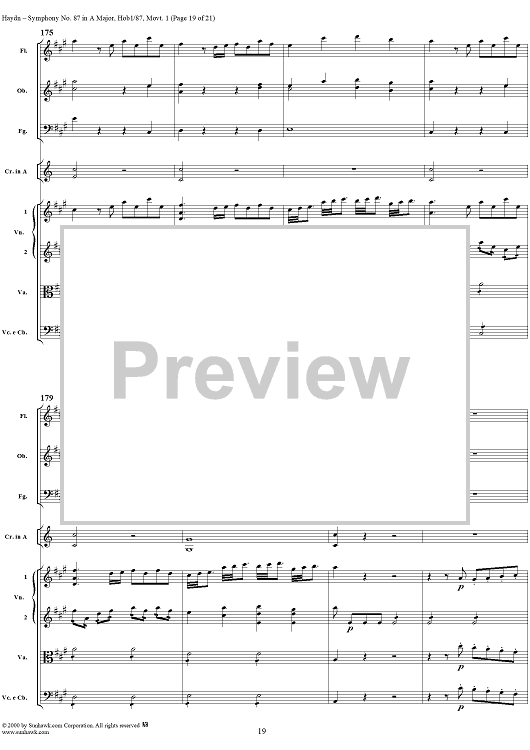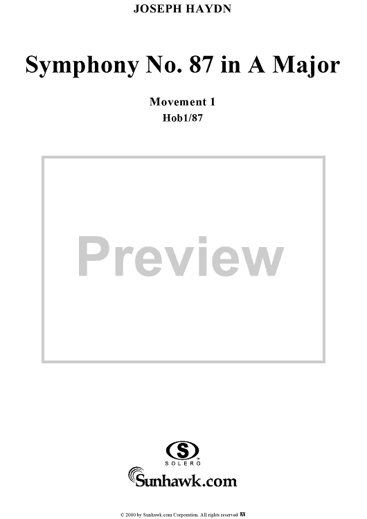 Digital Sheet Music for Symphony No. 87 in A Major movt. 1 - Hob1/87 - Full Score by Franz Joseph Haydn scored for Orchestra; id:265921