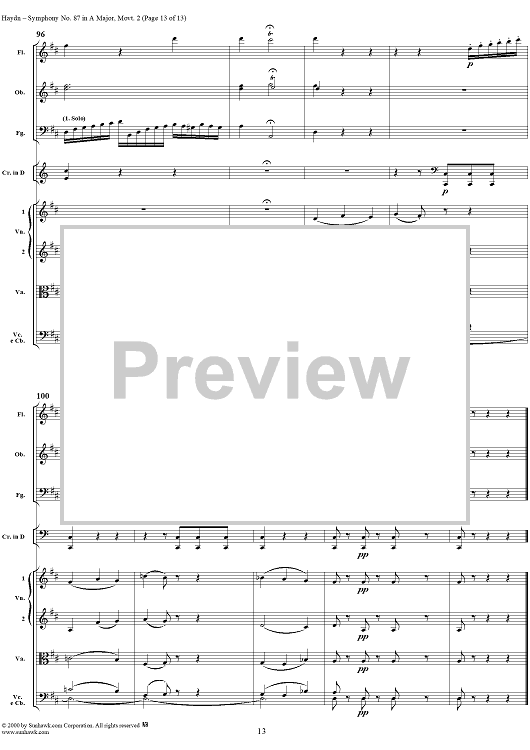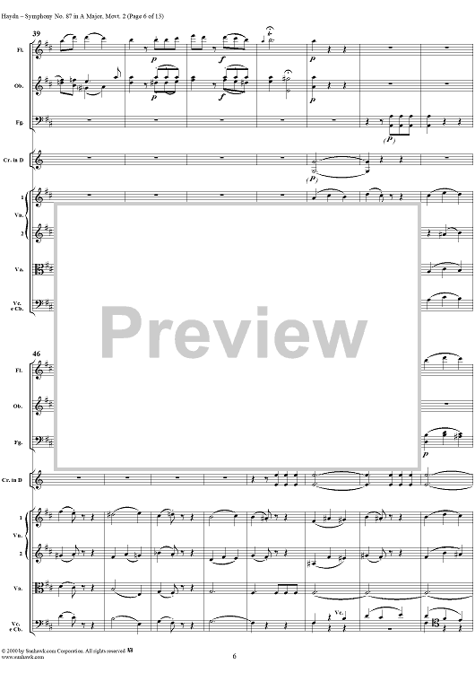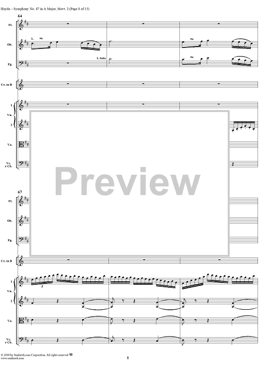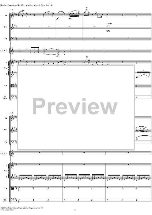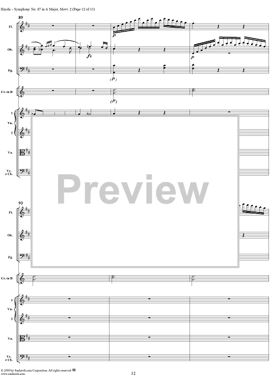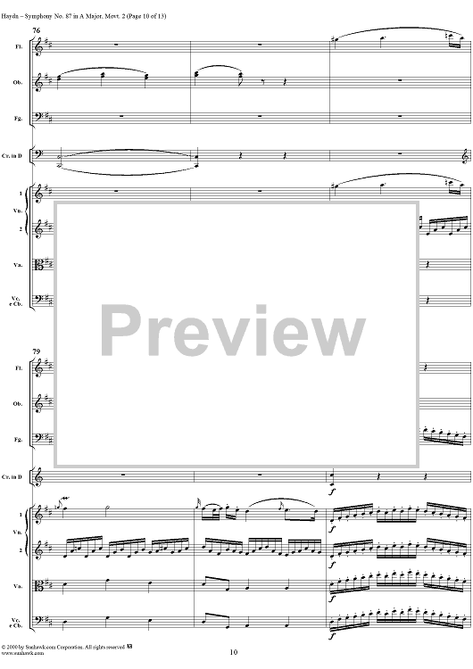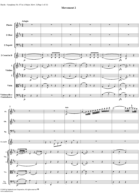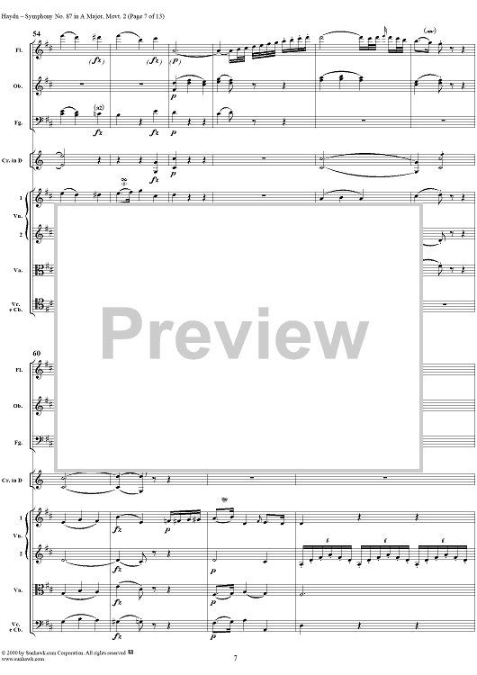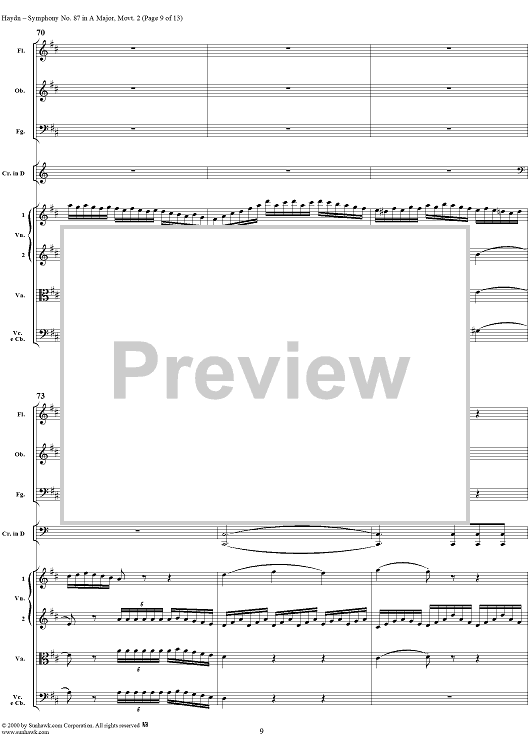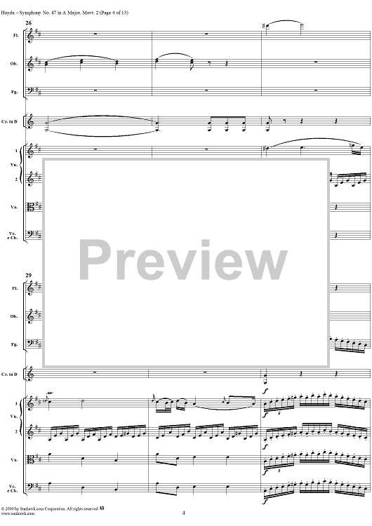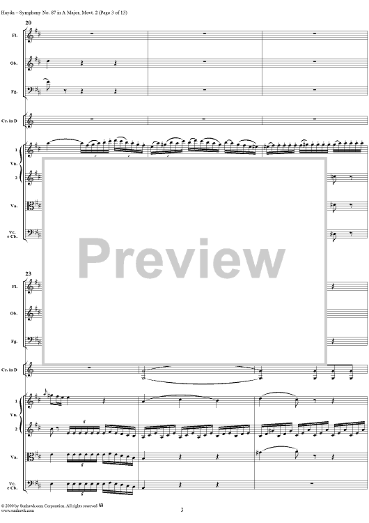 Digital Sheet Music for Symphony No. 87 in A Major movt. 2 - Hob1/87 - Full Score by Franz Joseph Haydn scored for Orchestra; id:265922