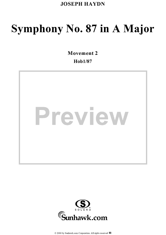 "Symphony No. 87 in A Major movt. 2 - Hob1/87 - Full Score" Sheet Music by Franz Joseph Haydn