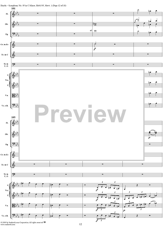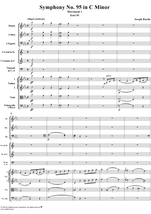 Digital Sheet Music for Symphony No. 95 in C Minor movt. 1 - Hob1/95 - Full Score by Franz Joseph Haydn scored for Orchestra; id:265928