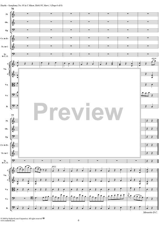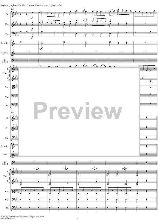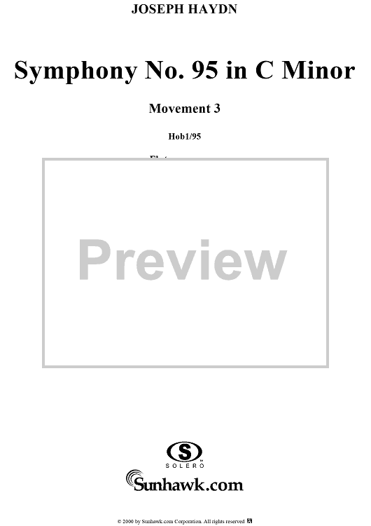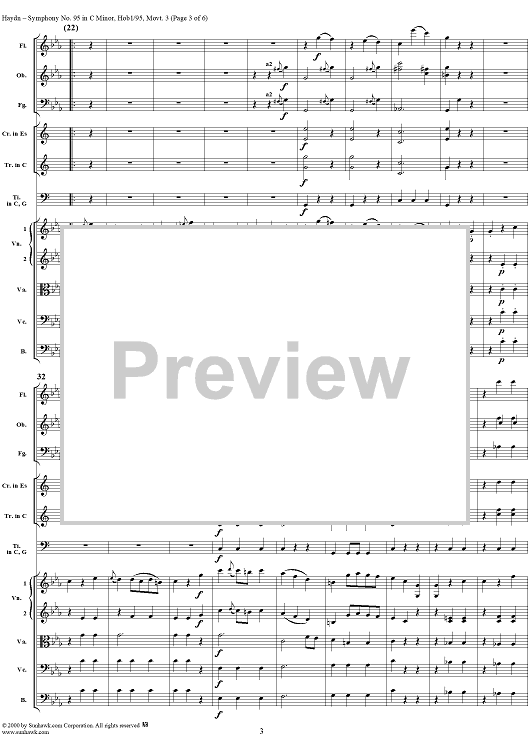 Digital Sheet Music for Symphony No. 95 in C Minor movt. 3 - Hob1/95 - Full Score by Franz Joseph Haydn scored for Orchestra; id:265929