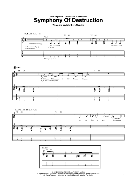 Digital Sheet Music for Symphony Of Destruction by Megadeth, Dave Mustaine scored for Guitar Tab; id:368968