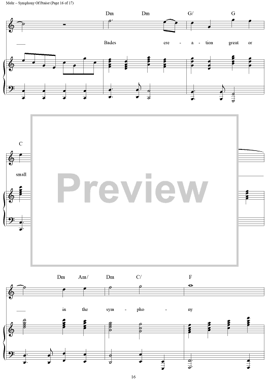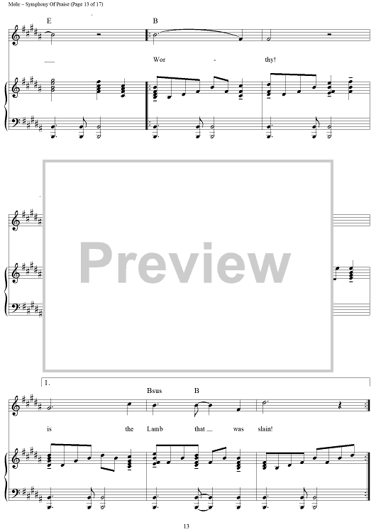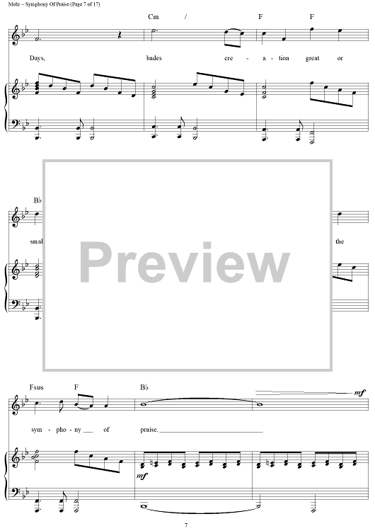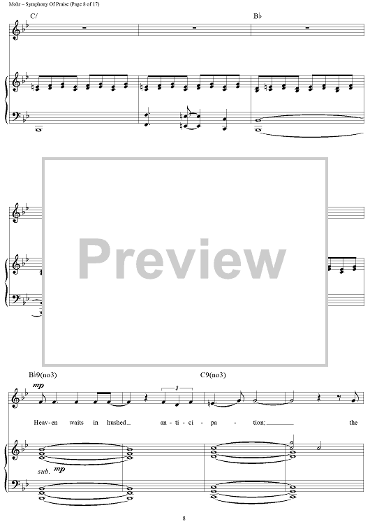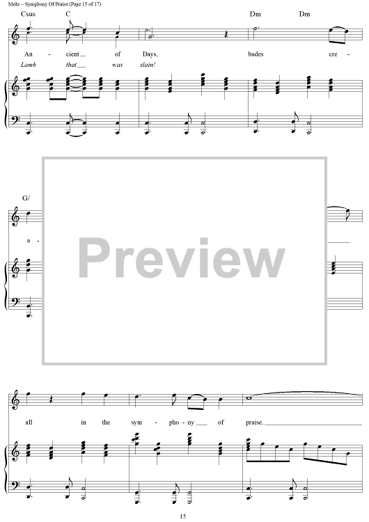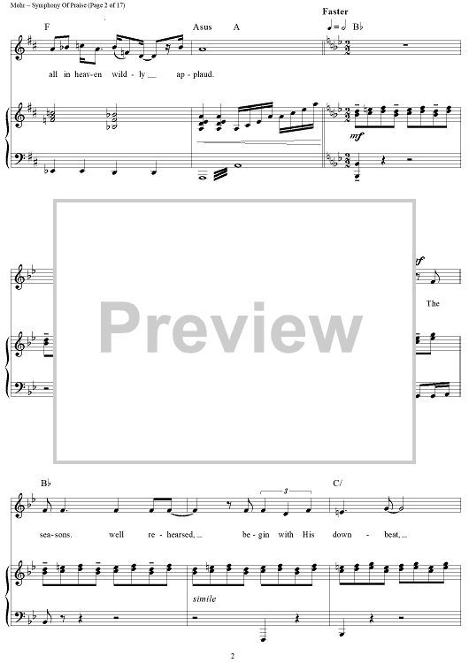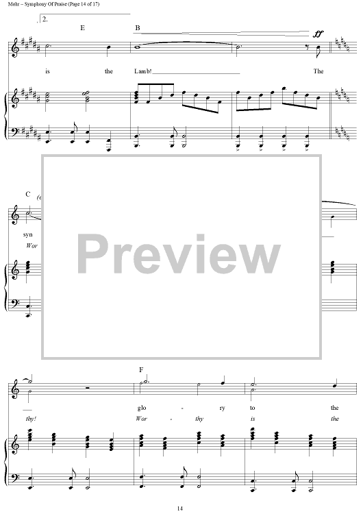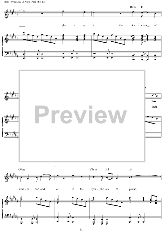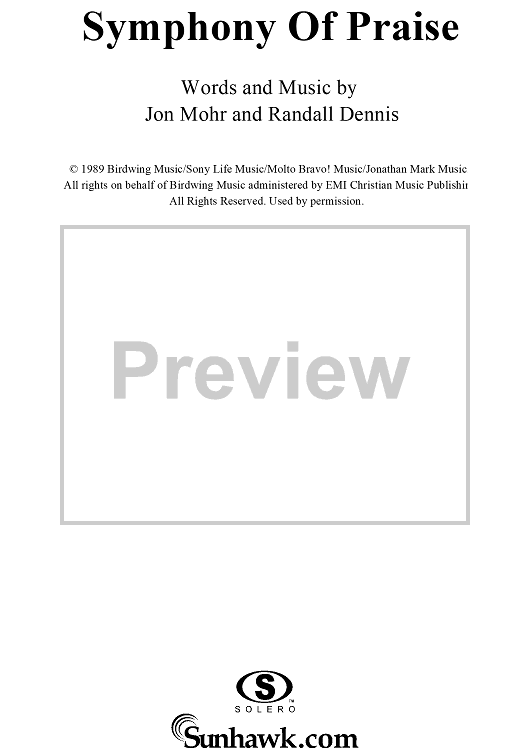 Digital Sheet Music for Symphony of Praise by Jon Mohr, Steve Green, Randall Dennis scored for Piano/Vocal/Chords; id:119321